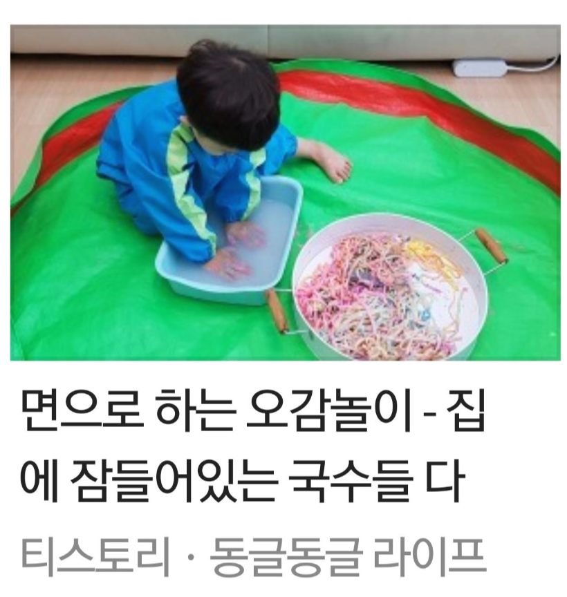 동글이와 집에있는 칼국수면, 파스타면을 가지고 놀이했던 내용을 포스팅 했었는데 다음 메인에 올랐어요.