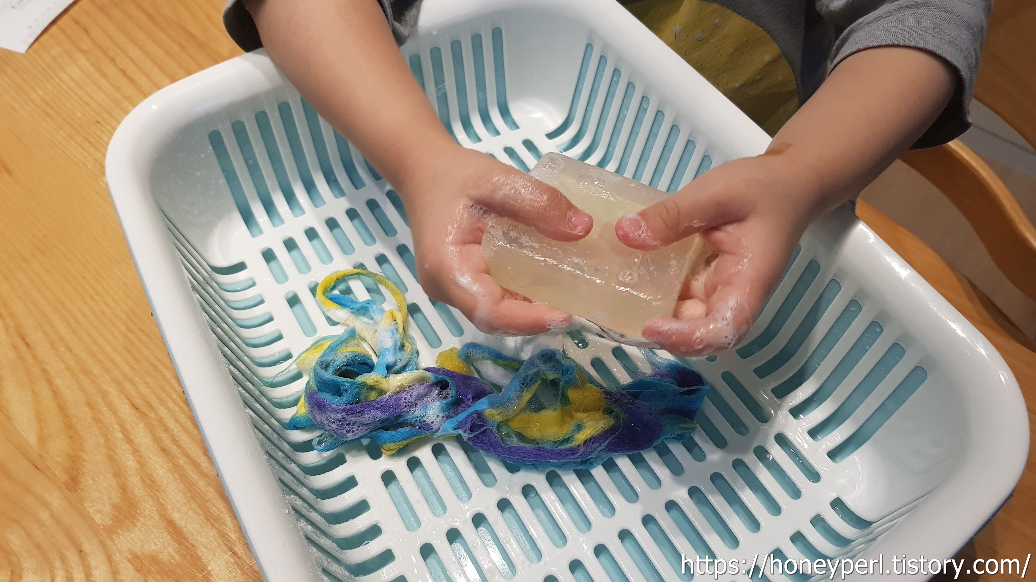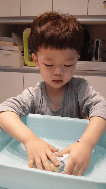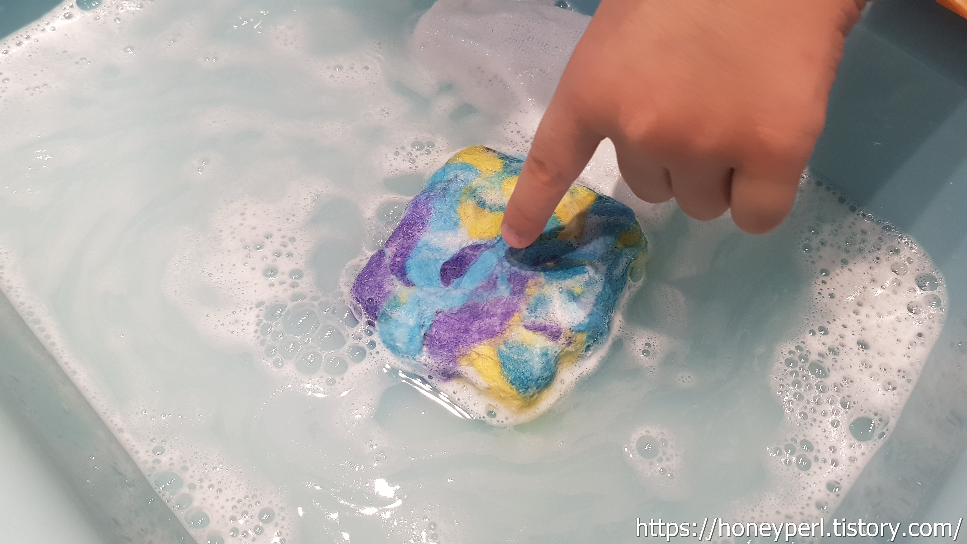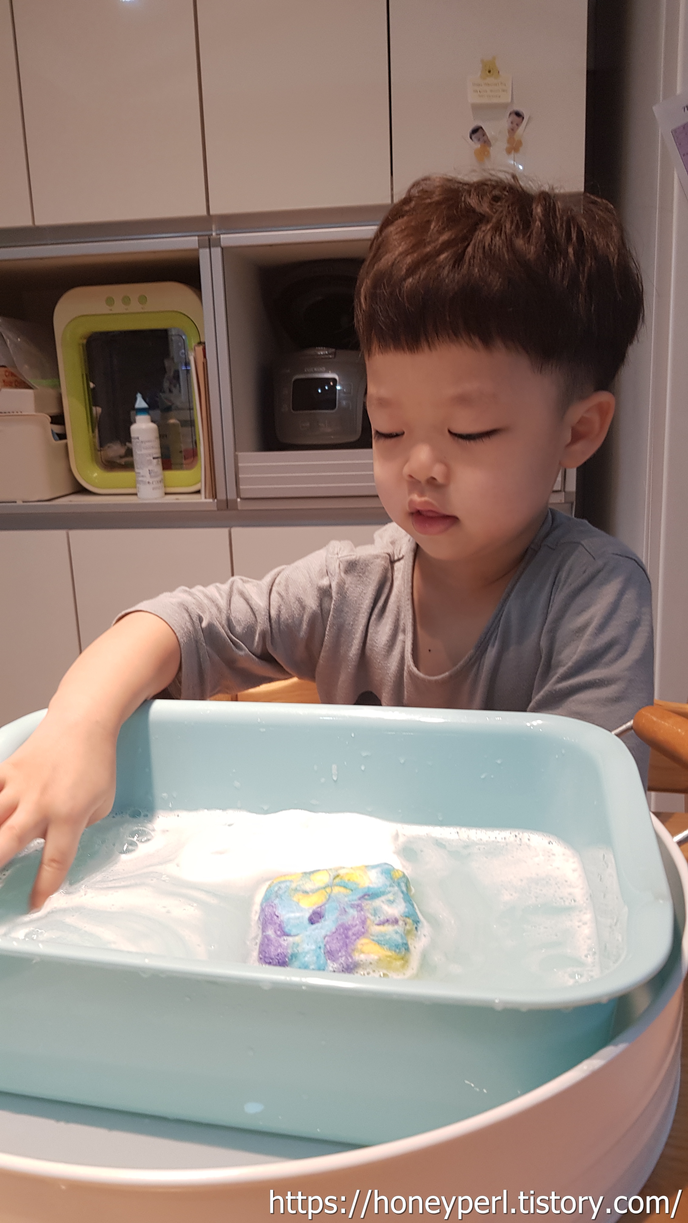 아름다운 색깔을 보고 부드러운 감촉을 느끼고 코끝에 스치는 향긋한 비누향이 아이의 정서에 좋은 영향을 주었을 것 같더군요.