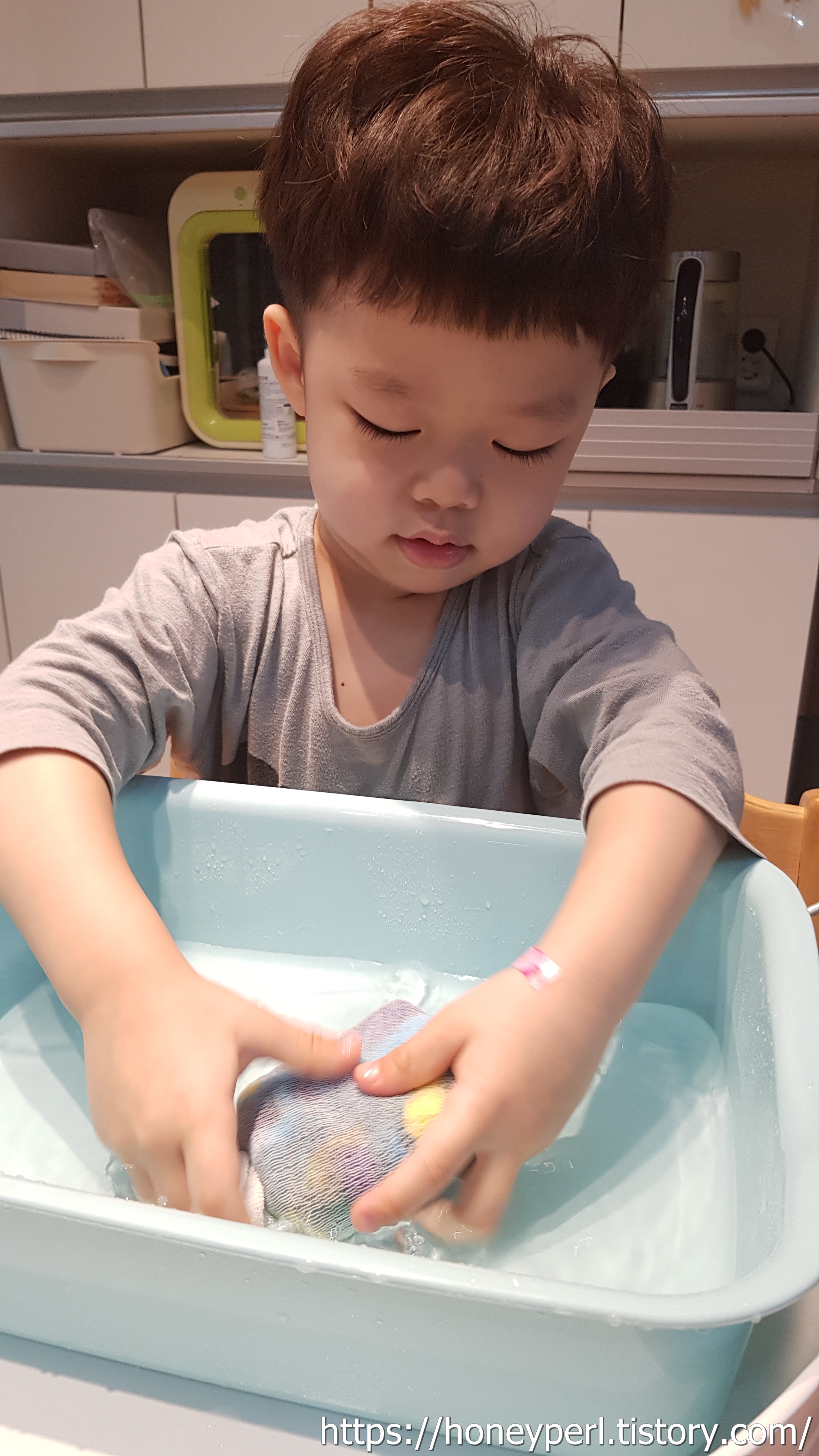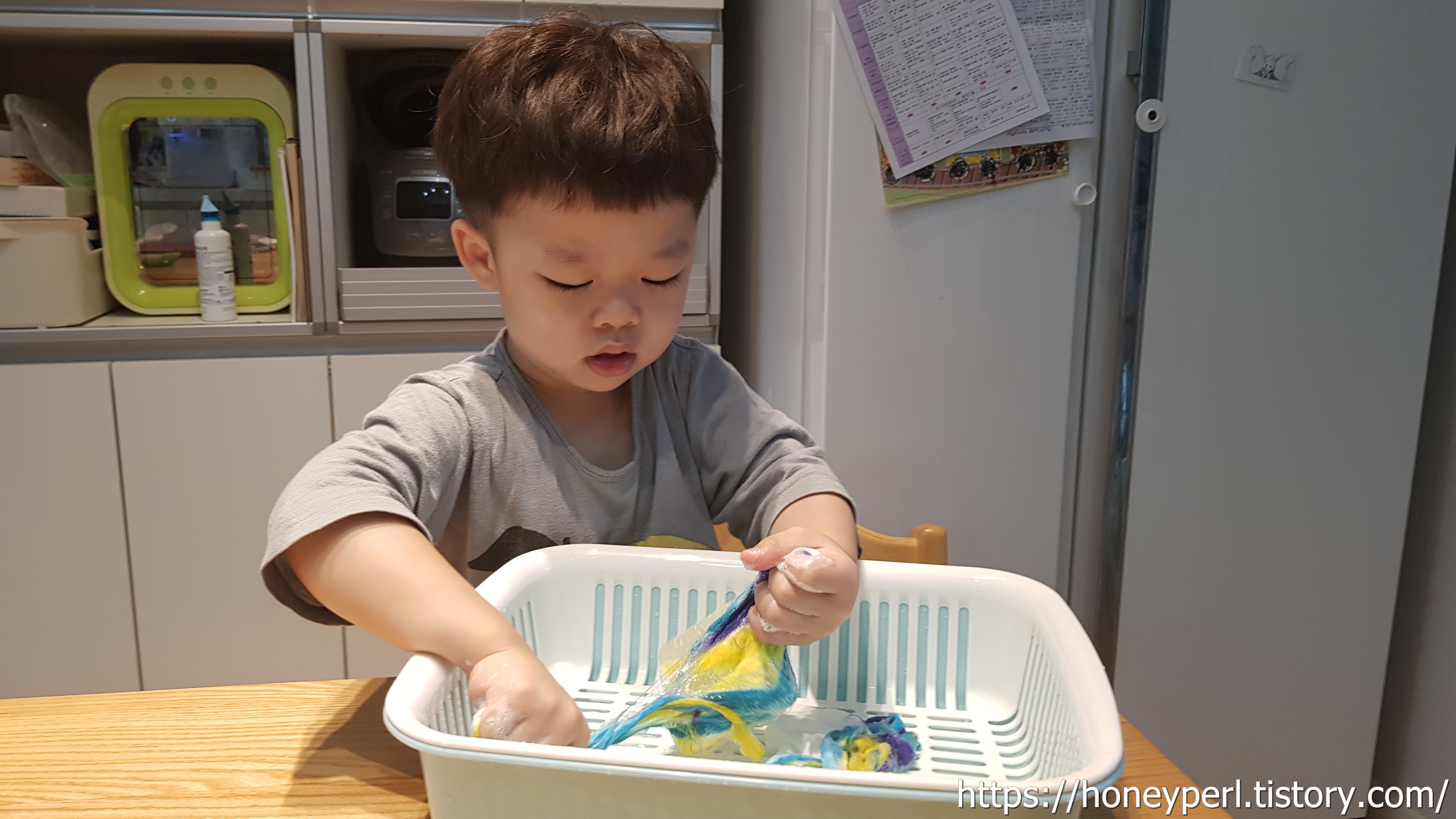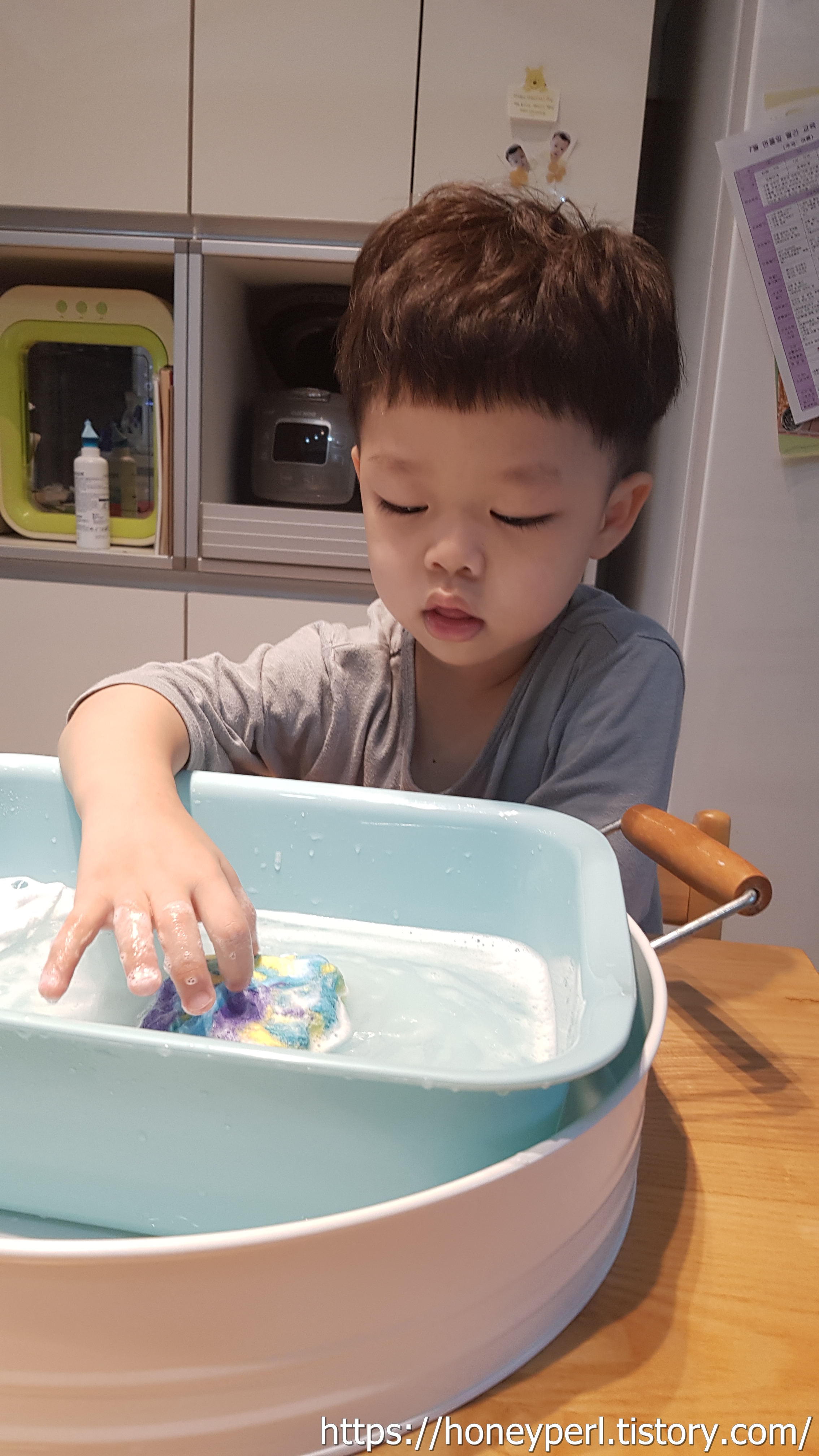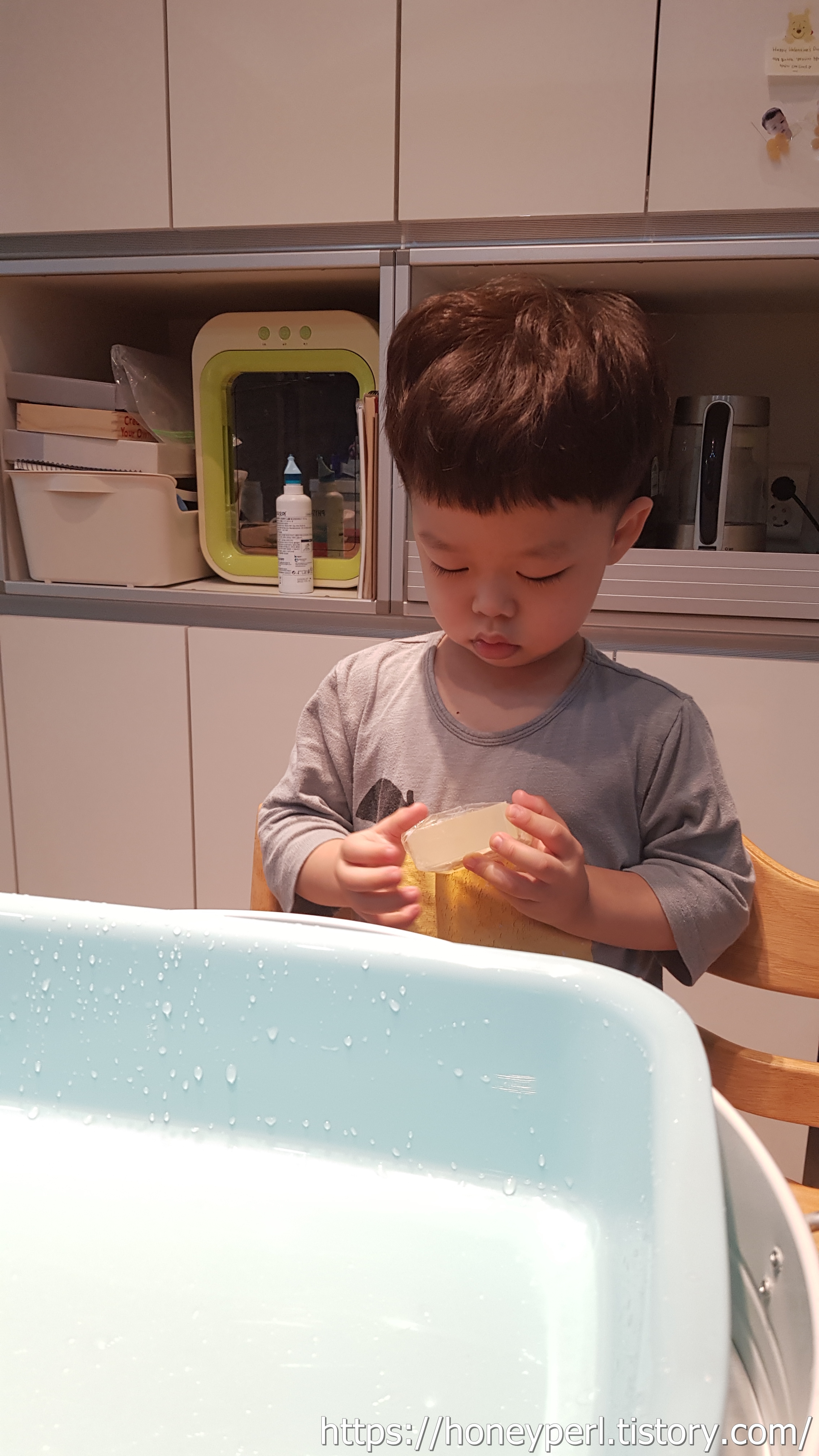 아름다운 색깔을 보고 부드러운 감촉을 느끼고 코끝에 스치는 향긋한 비누향이 아이의 정서에 좋은 영향을 주었을 것 같더군요.
