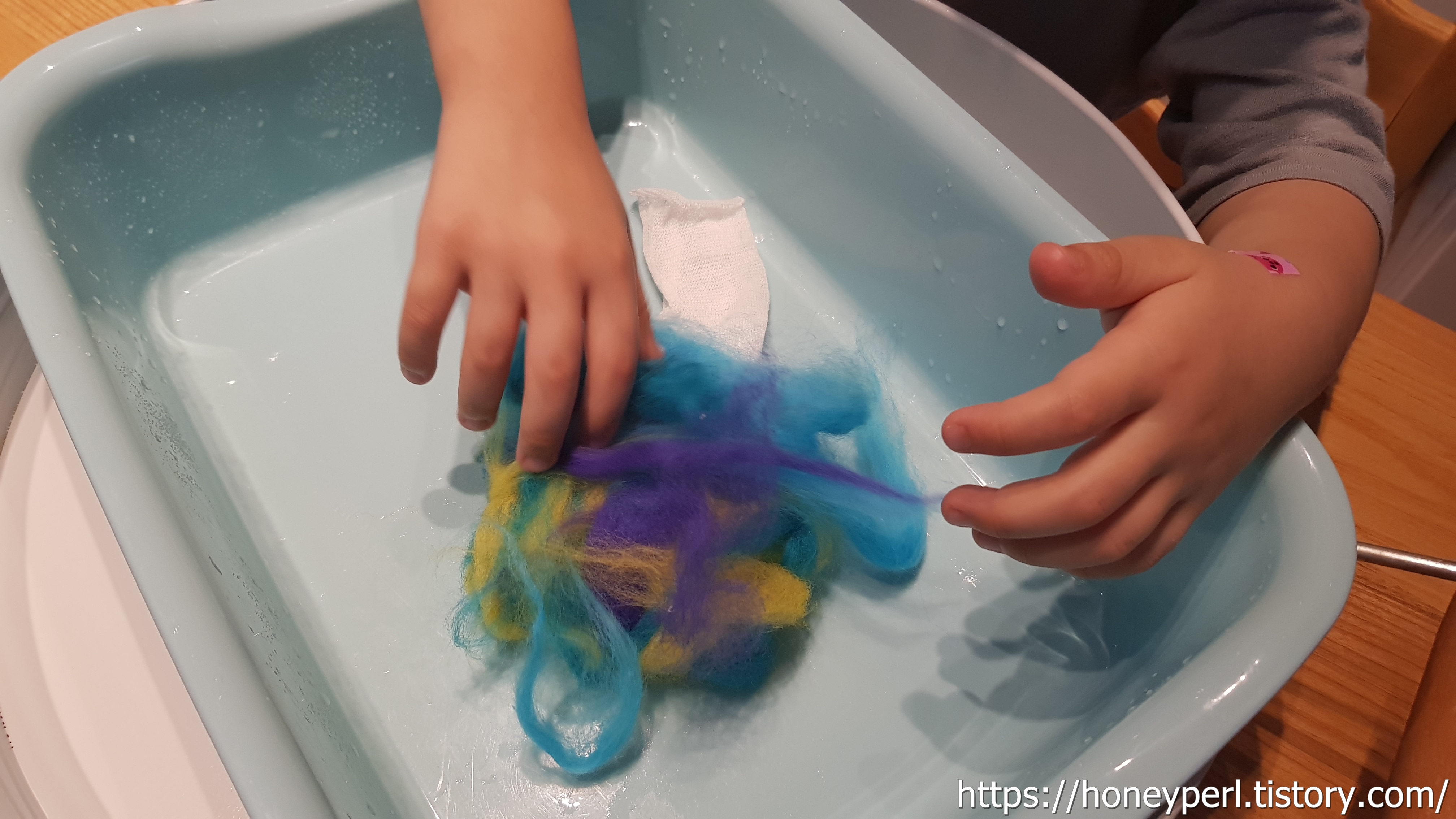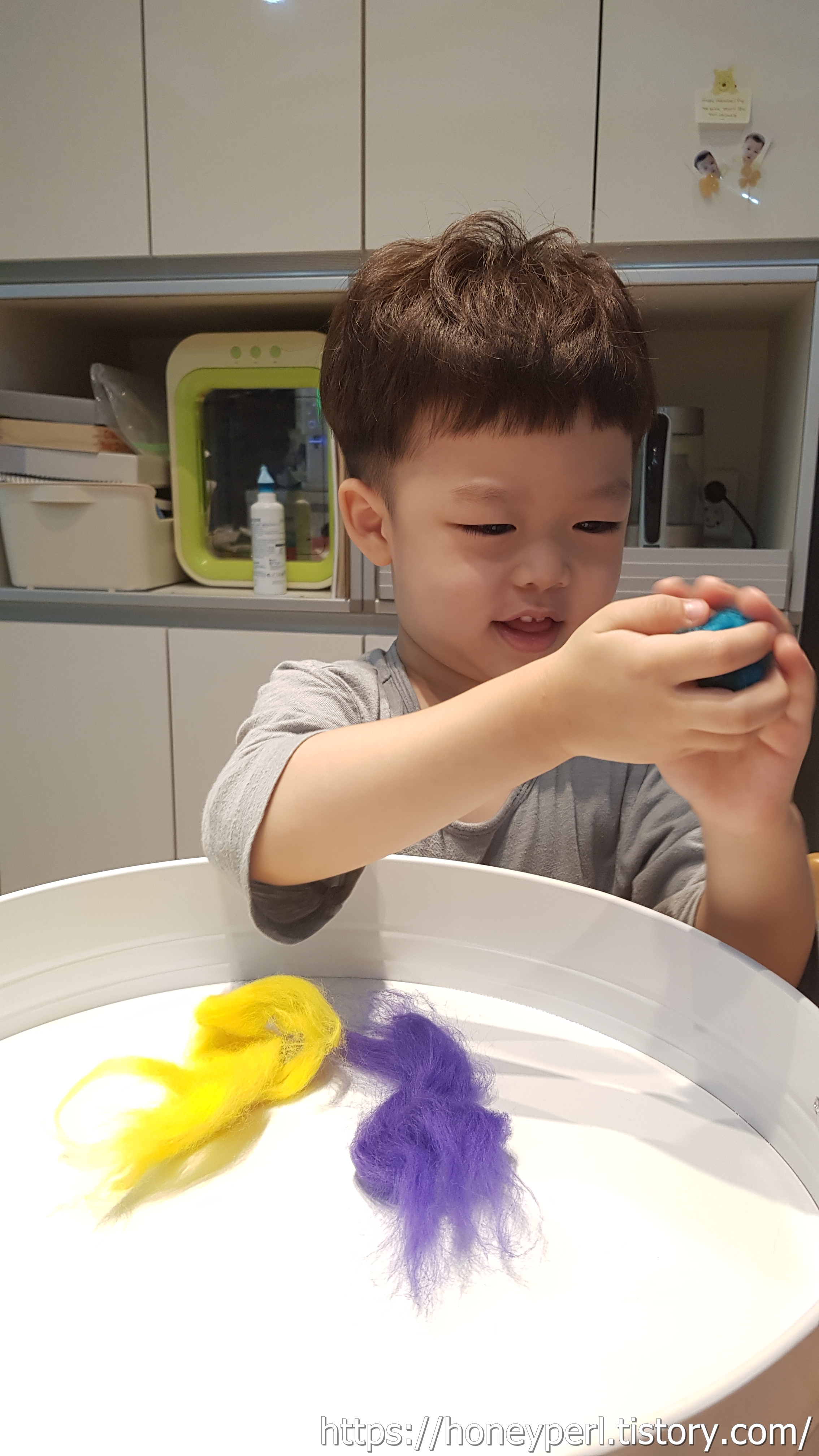 양모의 양이 넉넉하게 들어있어 놀이 한번 할 때 다 사용하는게 아니라 좀 나눠서 써도 되겠더군요.