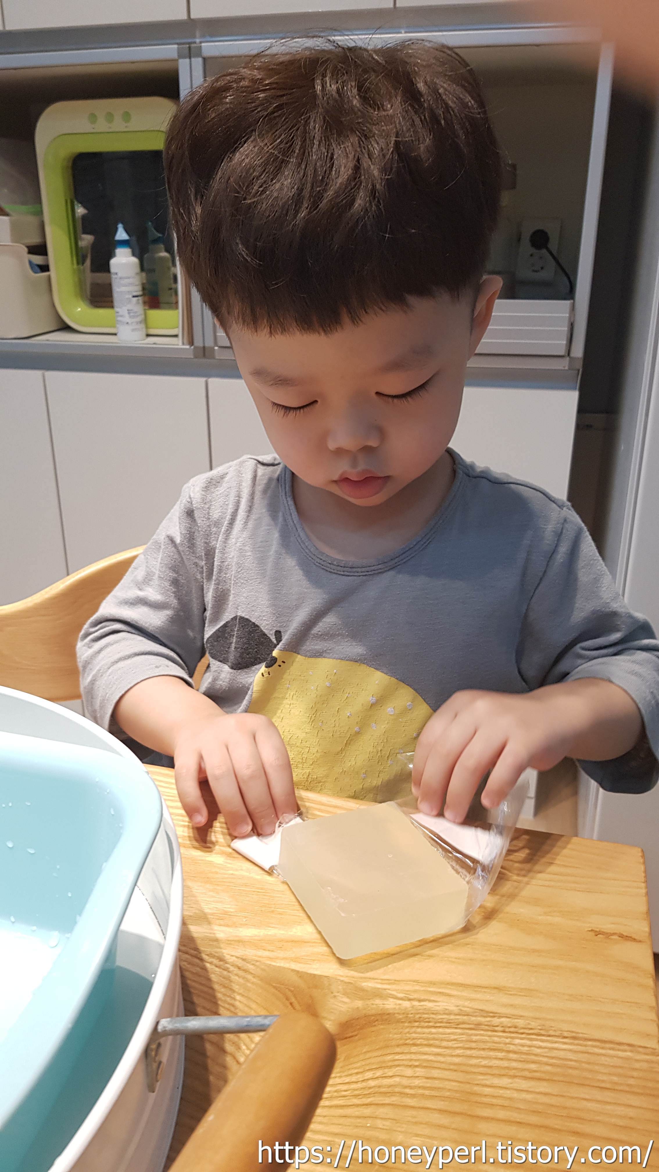 손끝이 야무진 동글이는 뭐든 본인이 하셔야 직성에 풀리는지라 양모비누 만들기 키트도 엄마가 열면 안되고 본인이 하시겠대서 그러시라고 했어요.