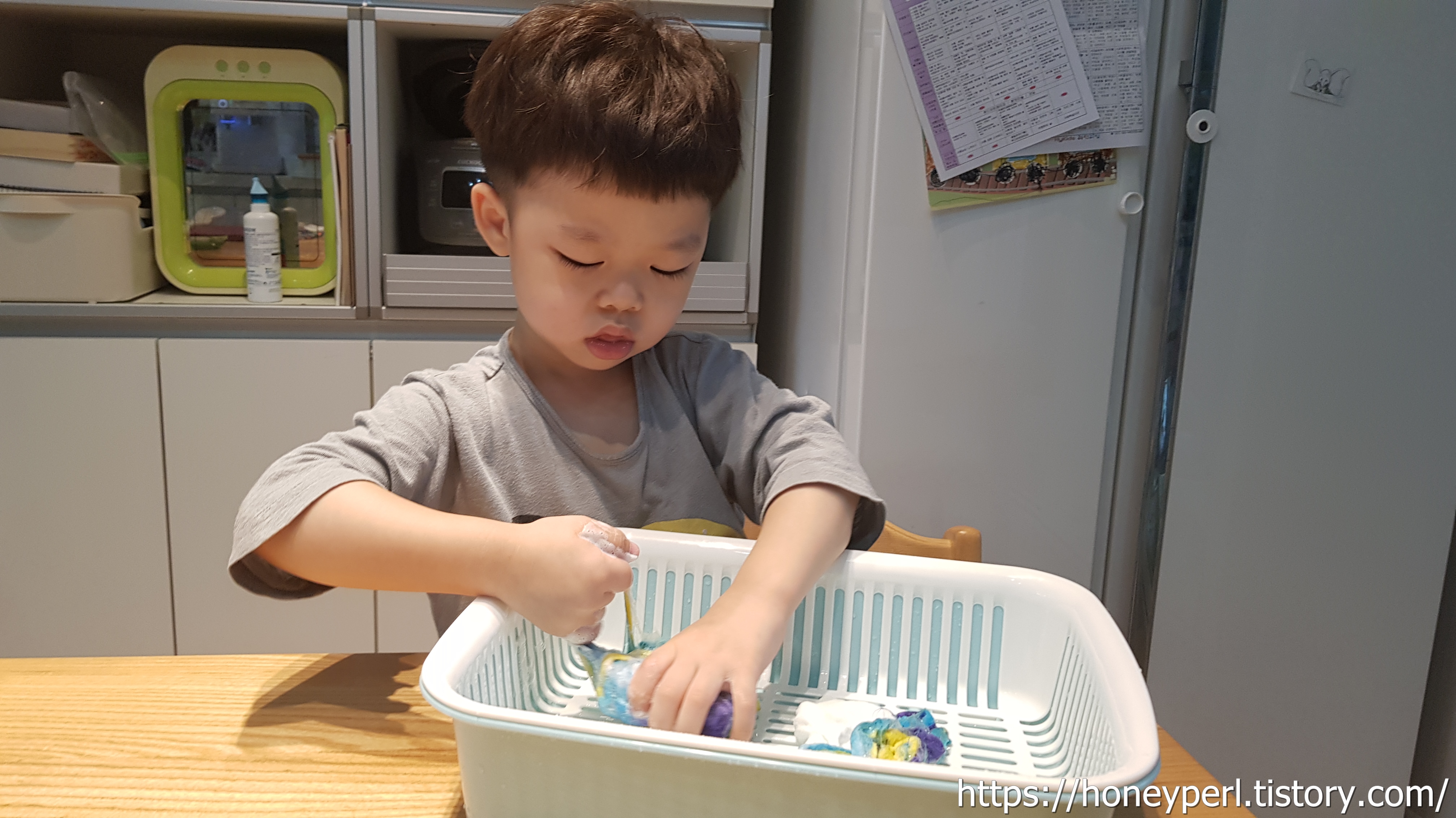 아이가 가지고 있는 감각을 다양하게 이용하며 할 수 있는 놀이여서 좋았던 것 같아요.