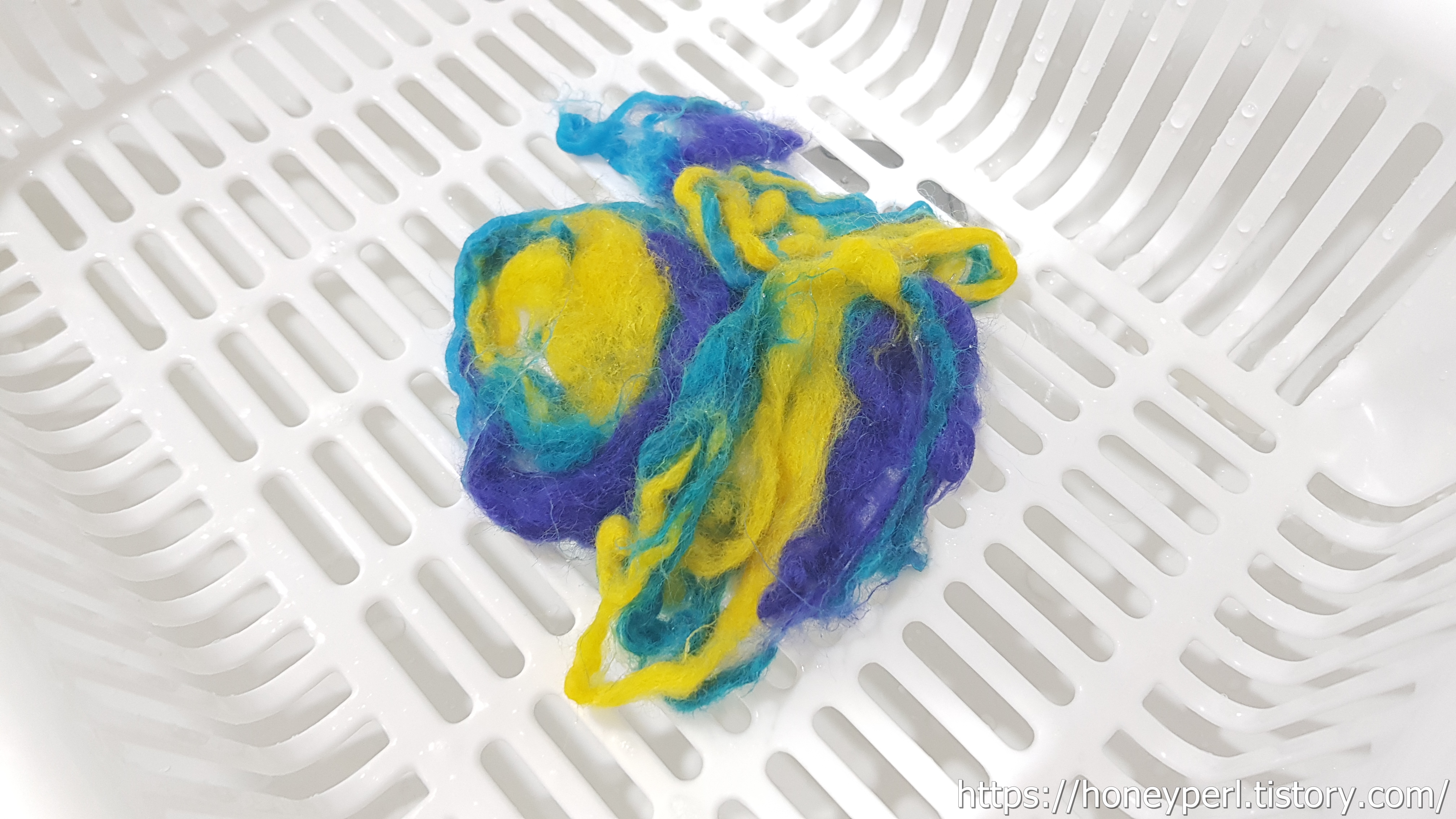 확실히 비눗물을 만난 양모는 질기고 뻣뻣한 느낌이었어요.