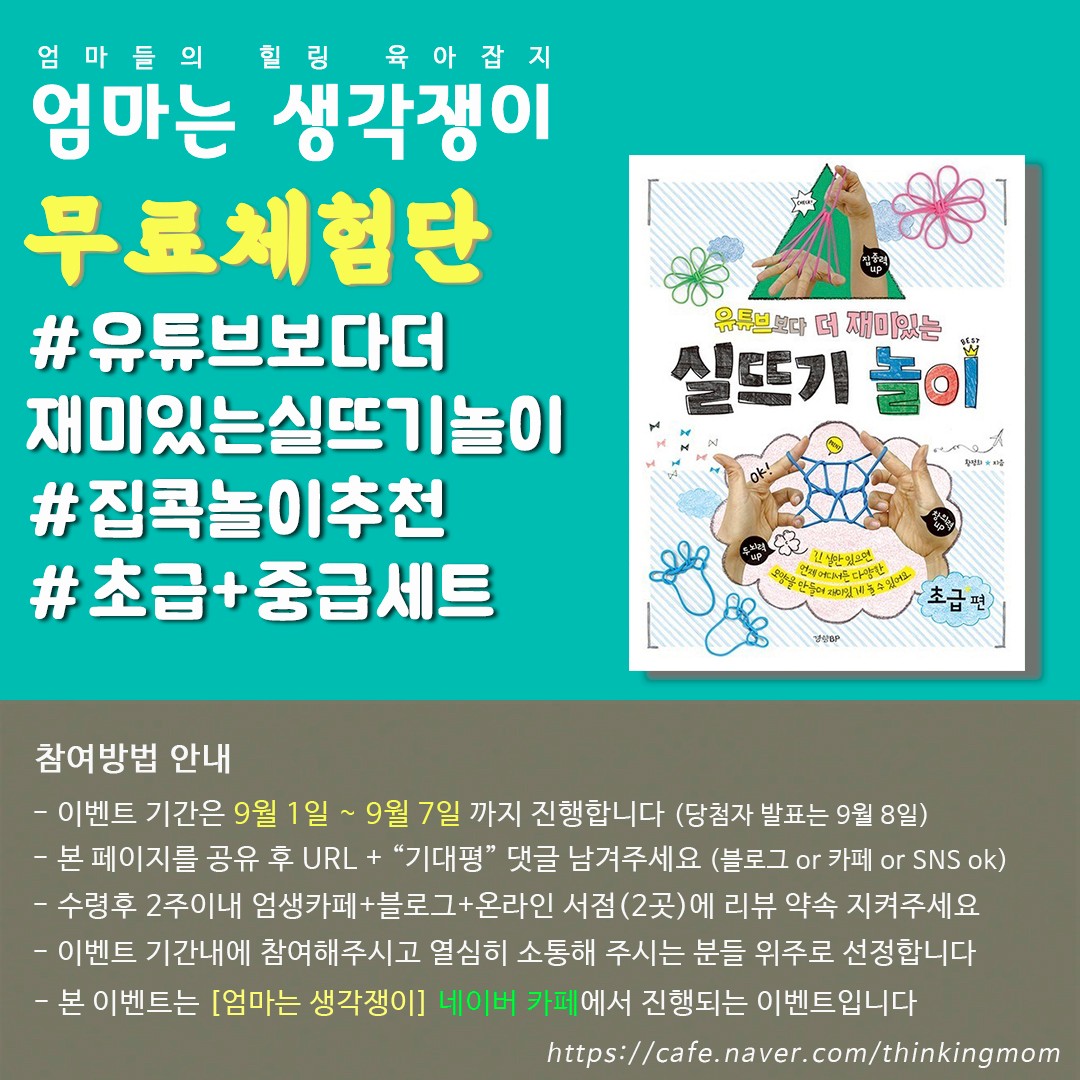 안녕하세요? 엄마는 생각쟁이 입니다. 엄마들의 힐링 육아 잡지 <엄마는 생각쟁이> 9월 무료체험단 소식 전해드립니다! #유튜브보다더재미있는실뜨기놀이 #집콕놀이추천 #무료체...