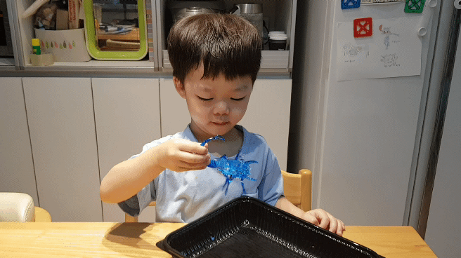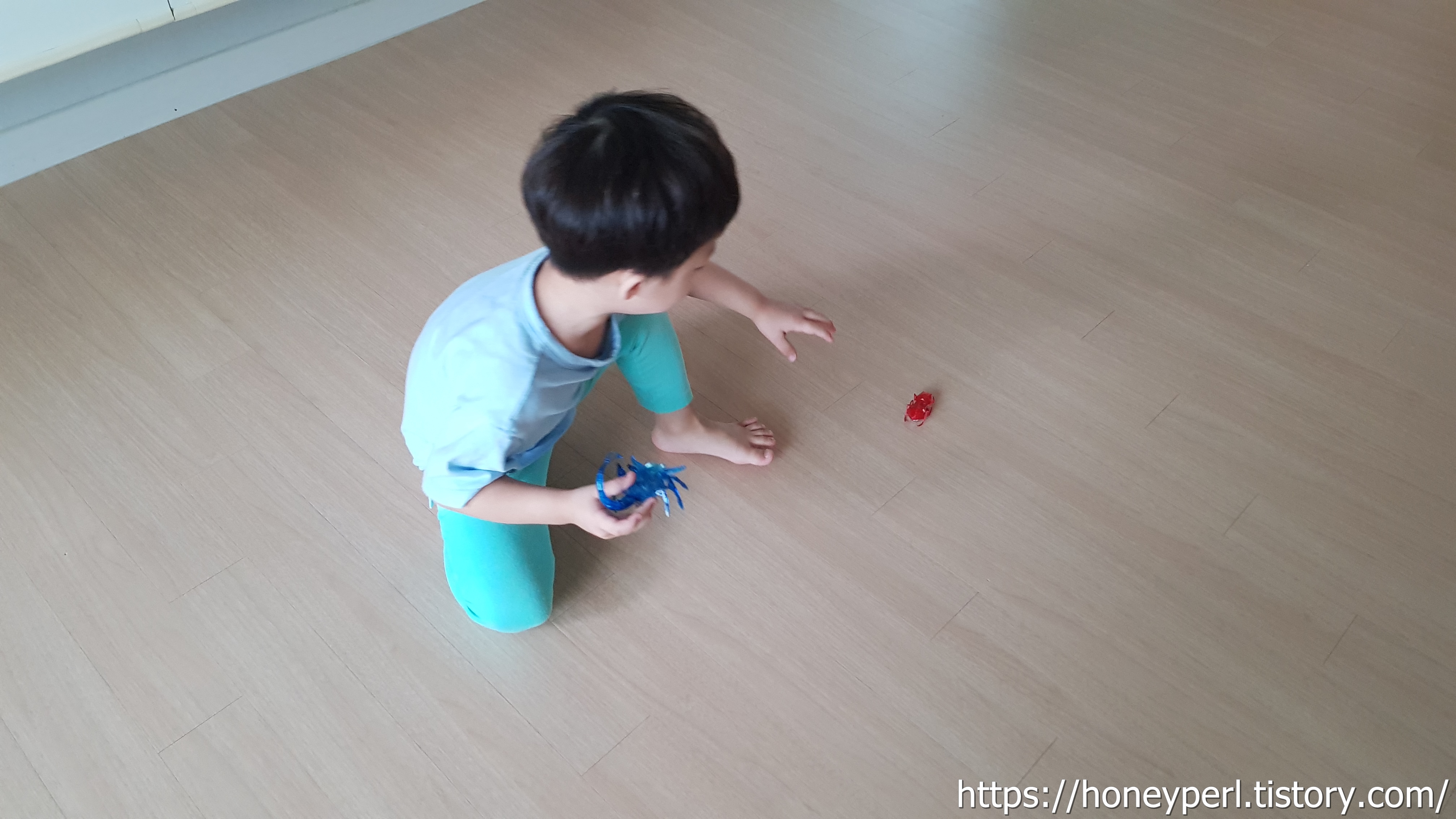 사방팔방으로 다닐까봐 트레이 안에 넣어서 보여주었는데 이제 제대로 가지고 놀아봐야겠죠?