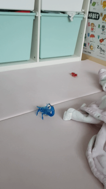 평소 로봇을 엄청 좋아하지만 벌레는 조금 무서워하는 동글이라 로봇인걸 알면서도 쫄렸는지 바로 도망가더라구요.