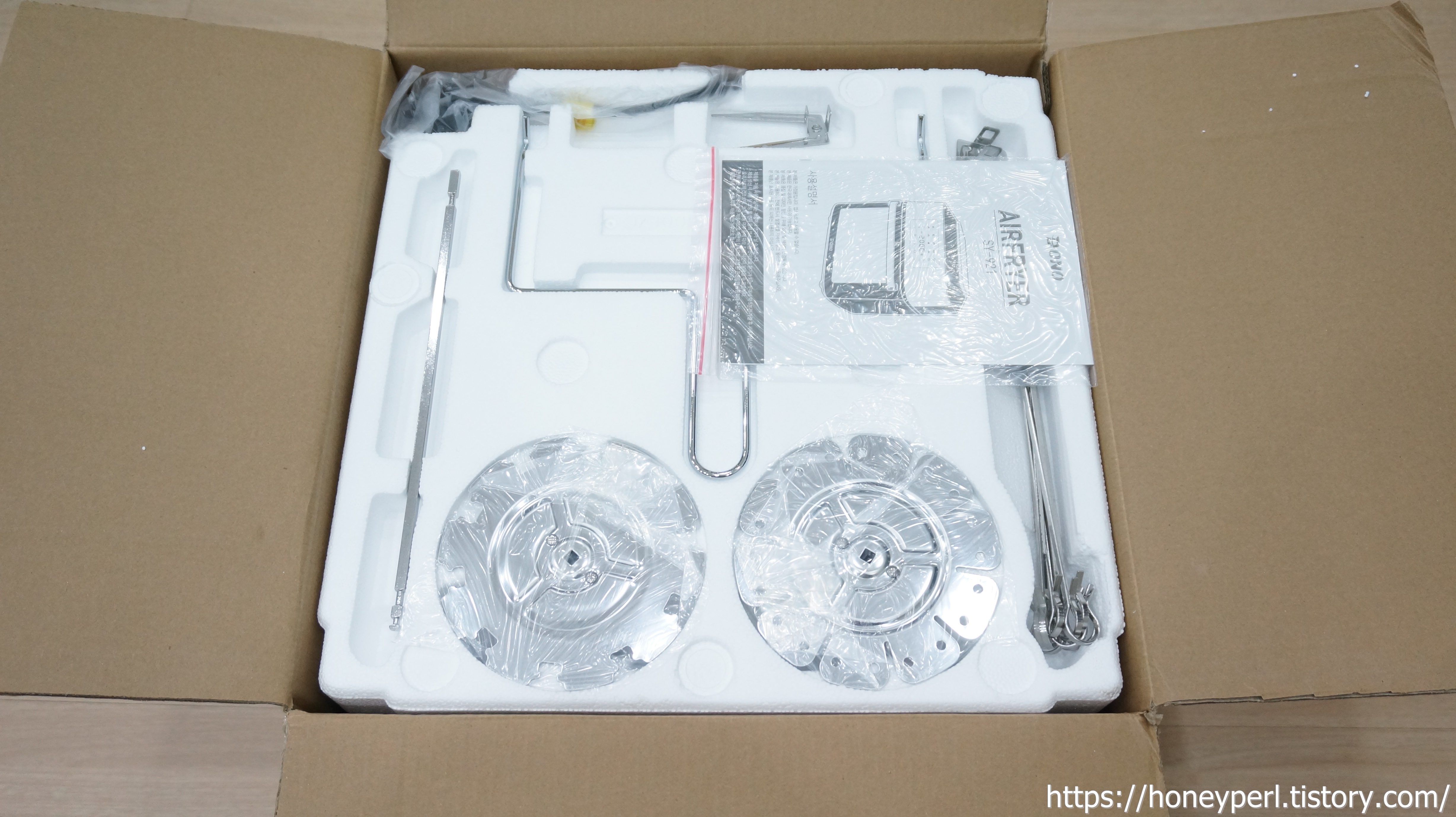 스티로폼포장재를 빼면 에어프라이어가 들어있어요.