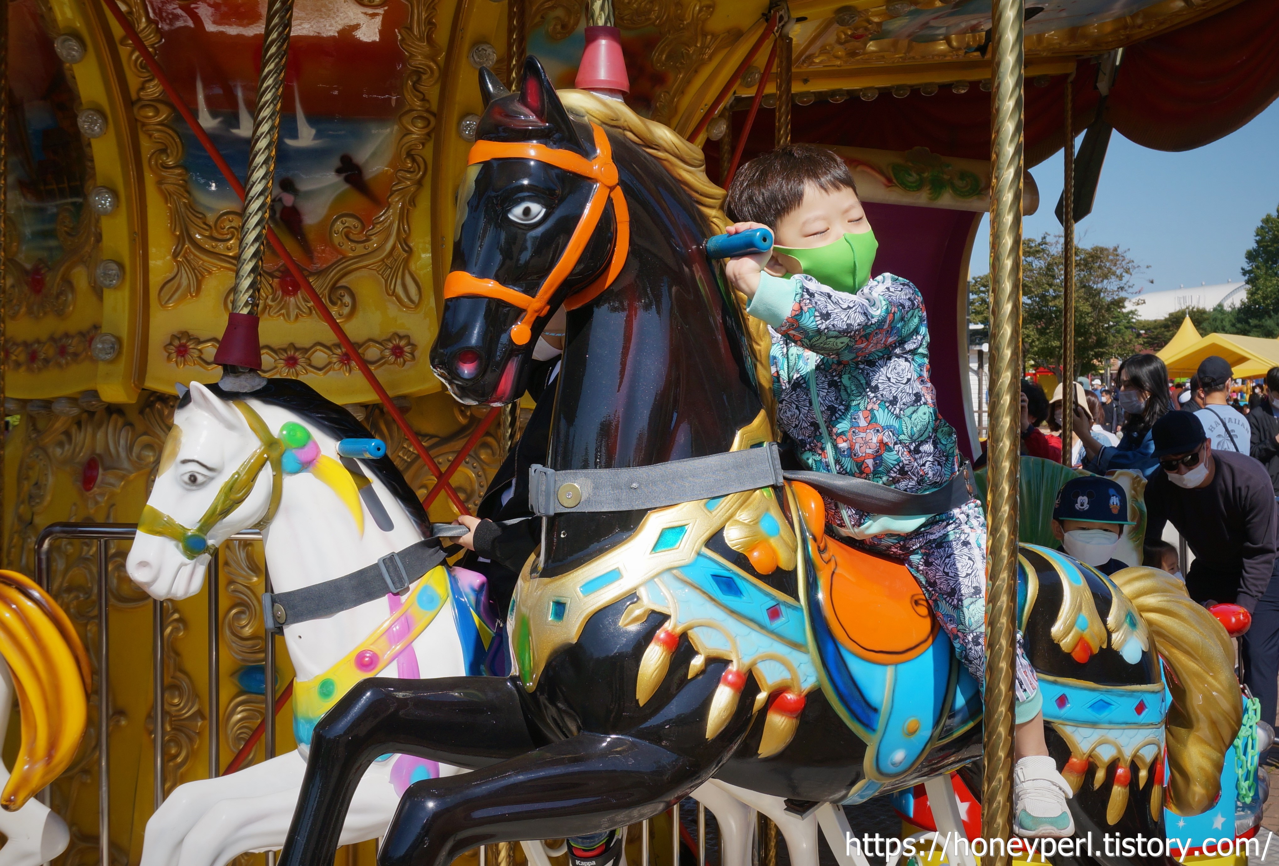 어린이 놀이기구는 1종에 3000원, 3종에 7000원인데 동글이가 원한 포크레인 놀이기구는 3종에 포함되어있지 않아서 회전목마와 포크레인 각각 구매했어요.