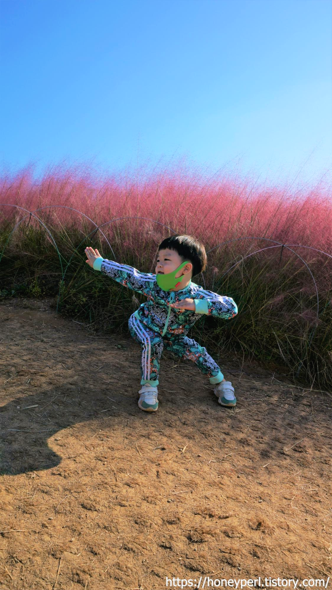 핑크뮬리 앞에서 예쁜 사진 남겨보고 싶었는데 저런 포즈는 누가 가르쳐준건지 배꼽잡았어요.