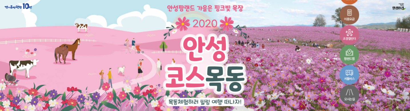처음 안성팜랜드를 갔을 때 코스모스를 잘못 본 줄 알았는데 코스모스 밭에서 목동체험하는 것을 붙여 만든 이름이더군요.