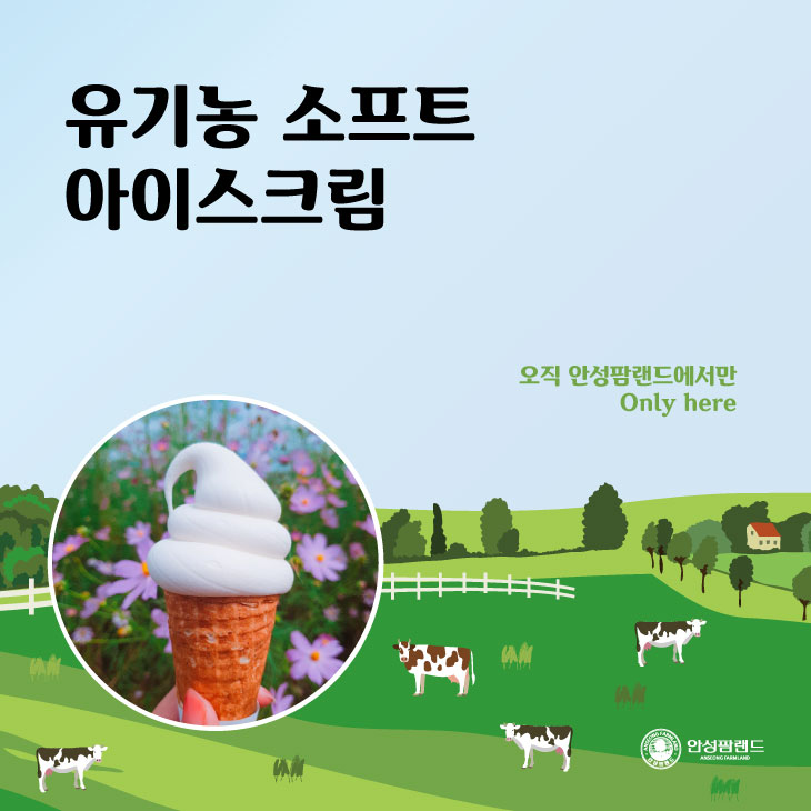 안성팜랜드에서만 맛볼 수 있는 유기농 소프트 아이스크림이라는 대형광고 말이예요.