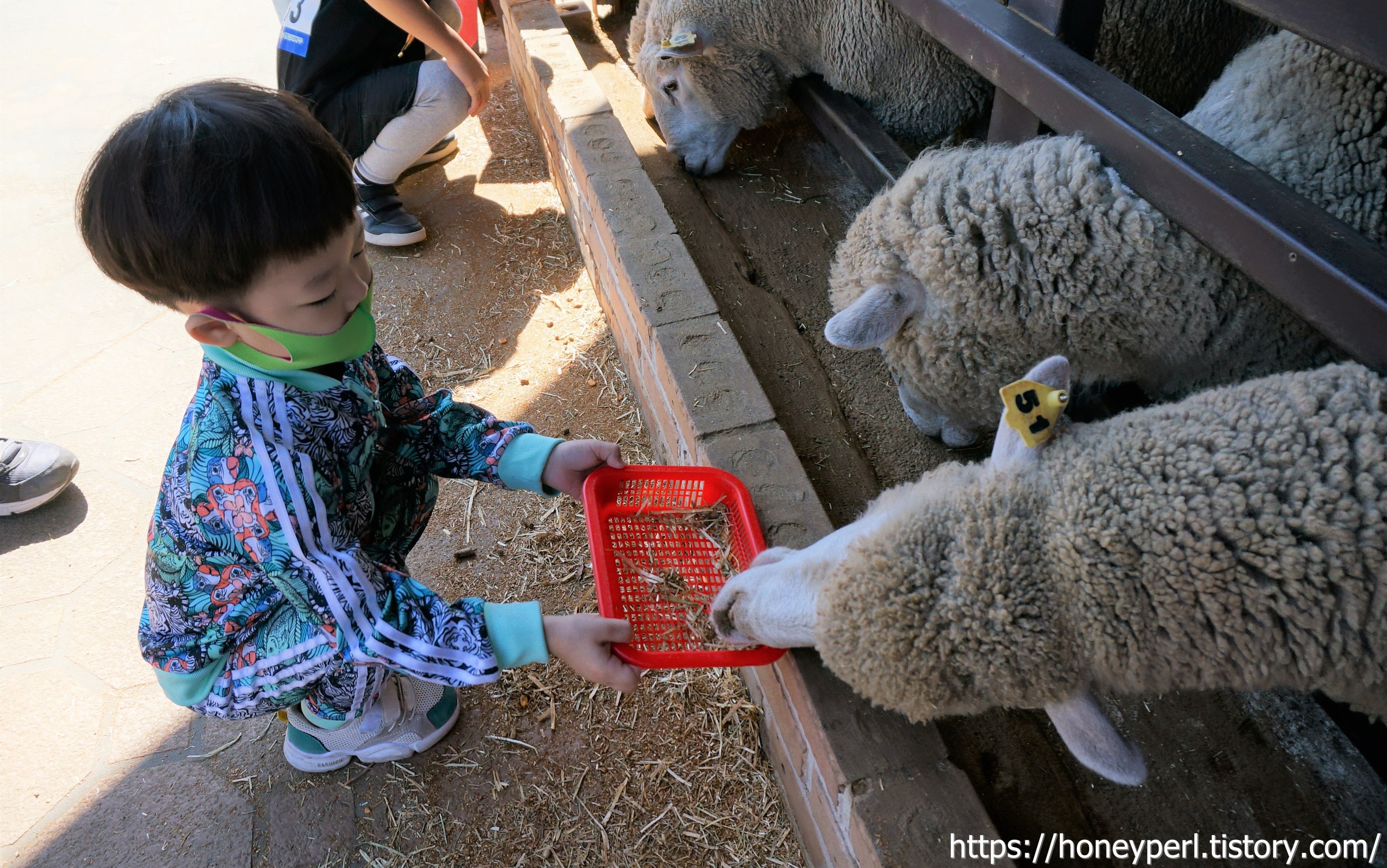 동글이는 작년까지만 해도 먹이주기에 그닥 관심이 없어서 구경만 했었는데 올해는 귀여운 양에게 먹이를 줘보고 싶다고 해서 건초를 구매해 먹이주기 체험도 해보았네요.