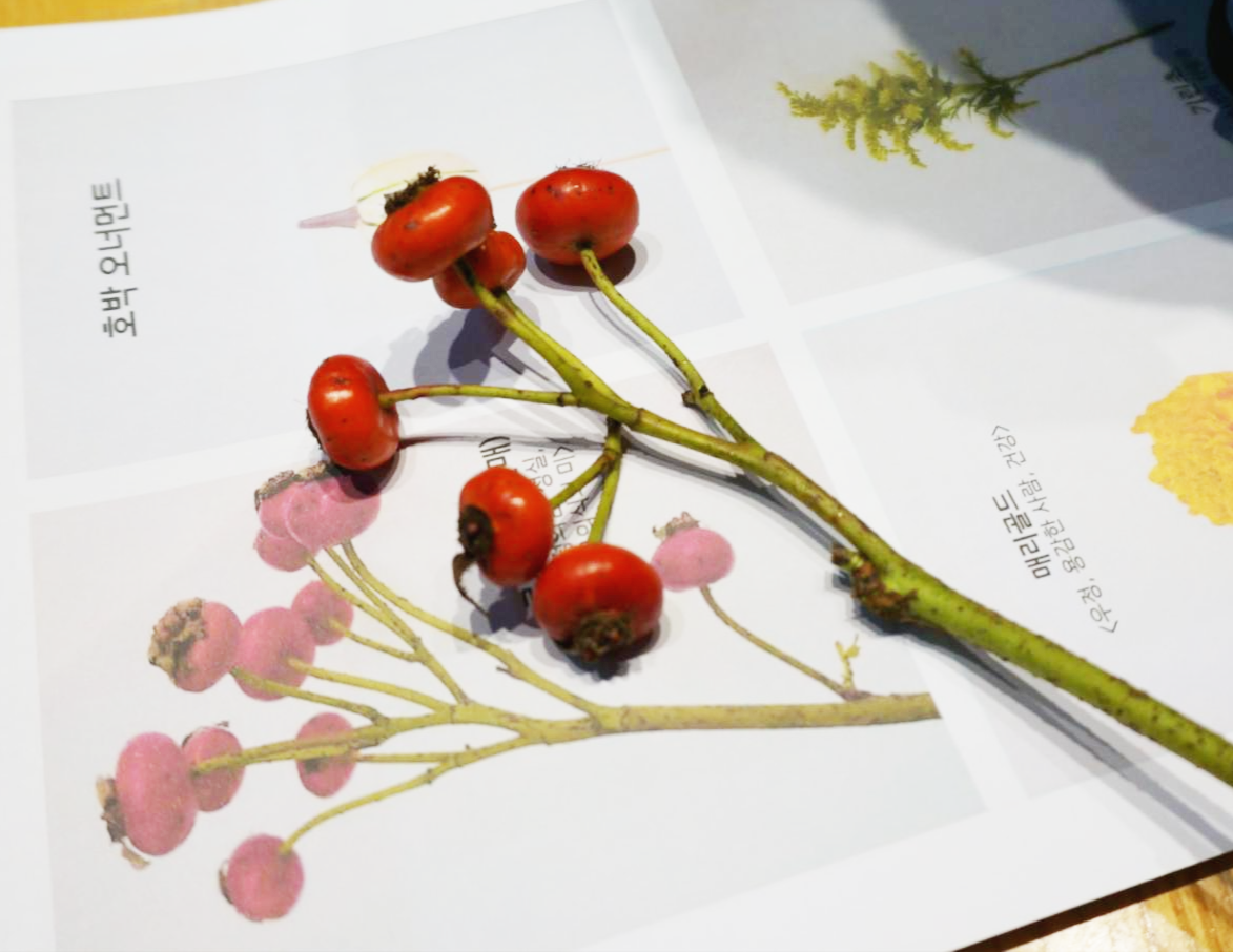 수확기에 높은 나무 위 과일을 전부 따지 않고 몇 개 남겨 놓은 것을 까치밥이라고 부른다고 하던데 이 노박덩굴은 진실, 강한운, 개운, 노력, 대기만성의 꽃말을 가지고 있다고 하네요.
