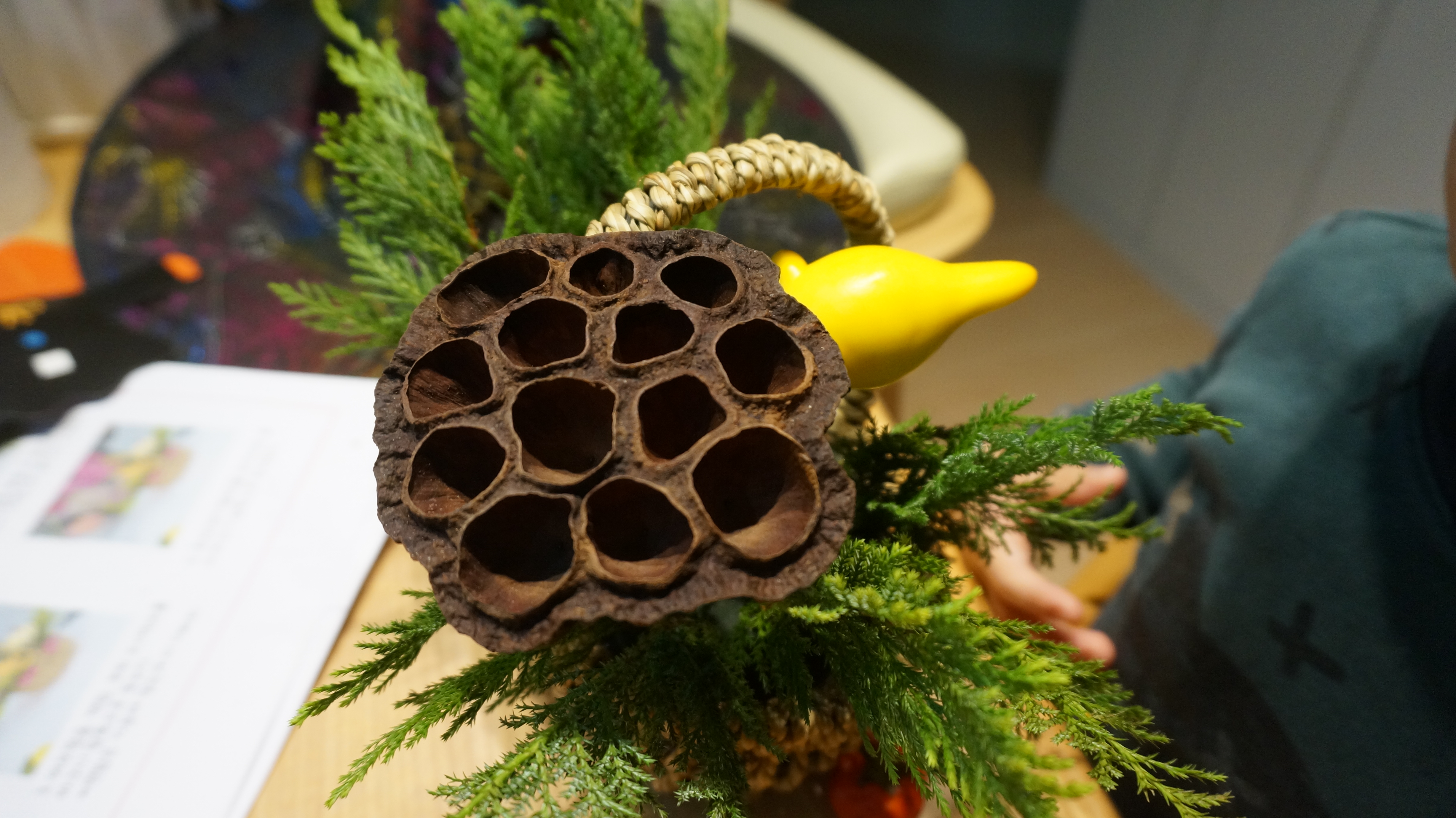 동글이는 연밥이 뒤에 보이게 꽂고 싶다고 해서 앞에서는 안보이는데 이렇게 봐도 멋지게 만들어졌네요.