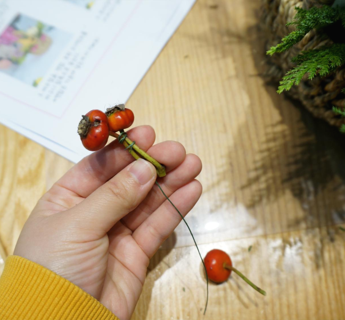 와이어를 자르고 열매를 묶는건 다섯살 동글이가 하기엔 좀 어려워서 제가 해줬어요.