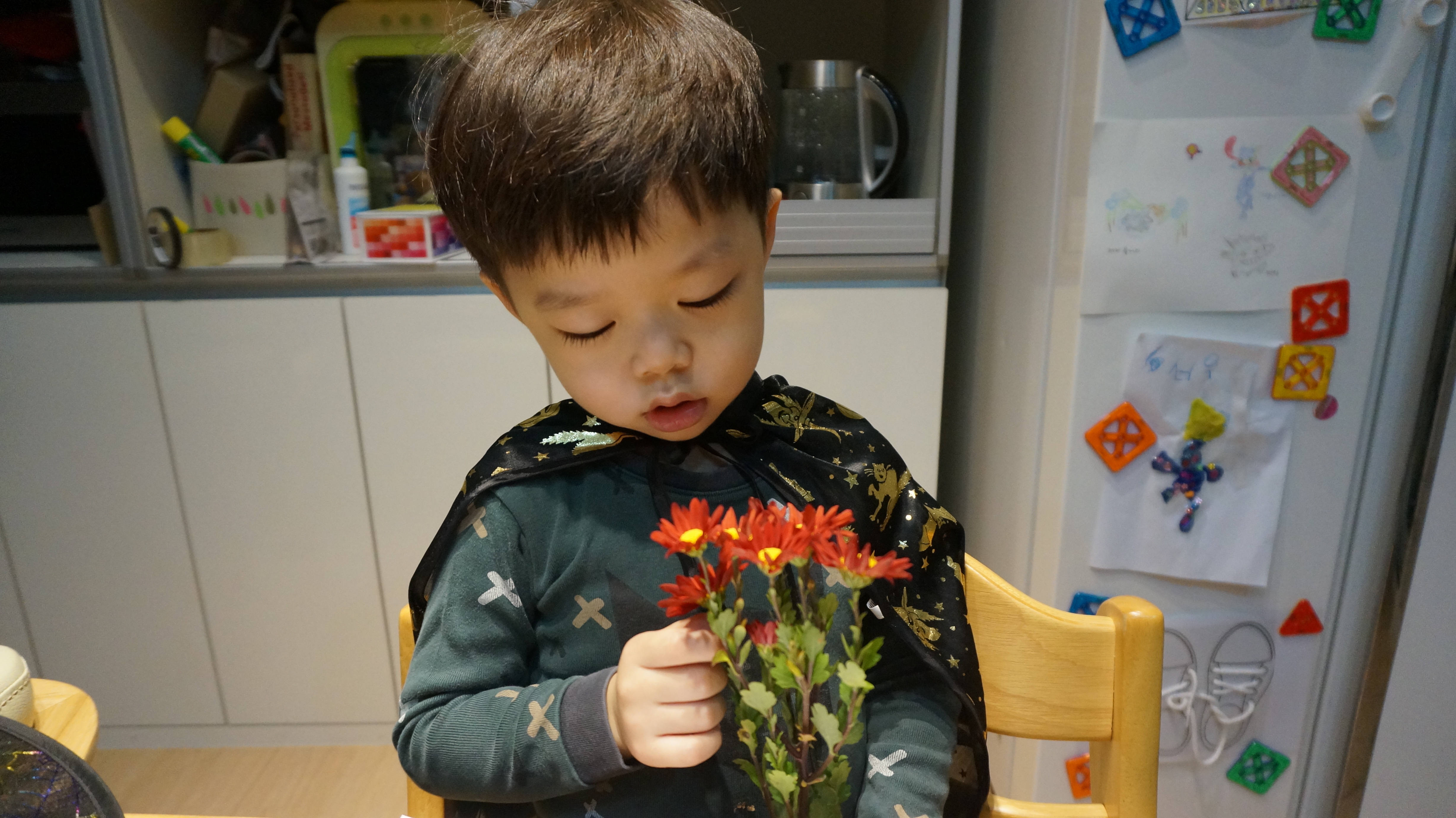 동글이가 꽃바구니를 완성하고 기분이 좋았는지 엄마가 하는 말장난도 즐겁게 다 받아주더라구요.