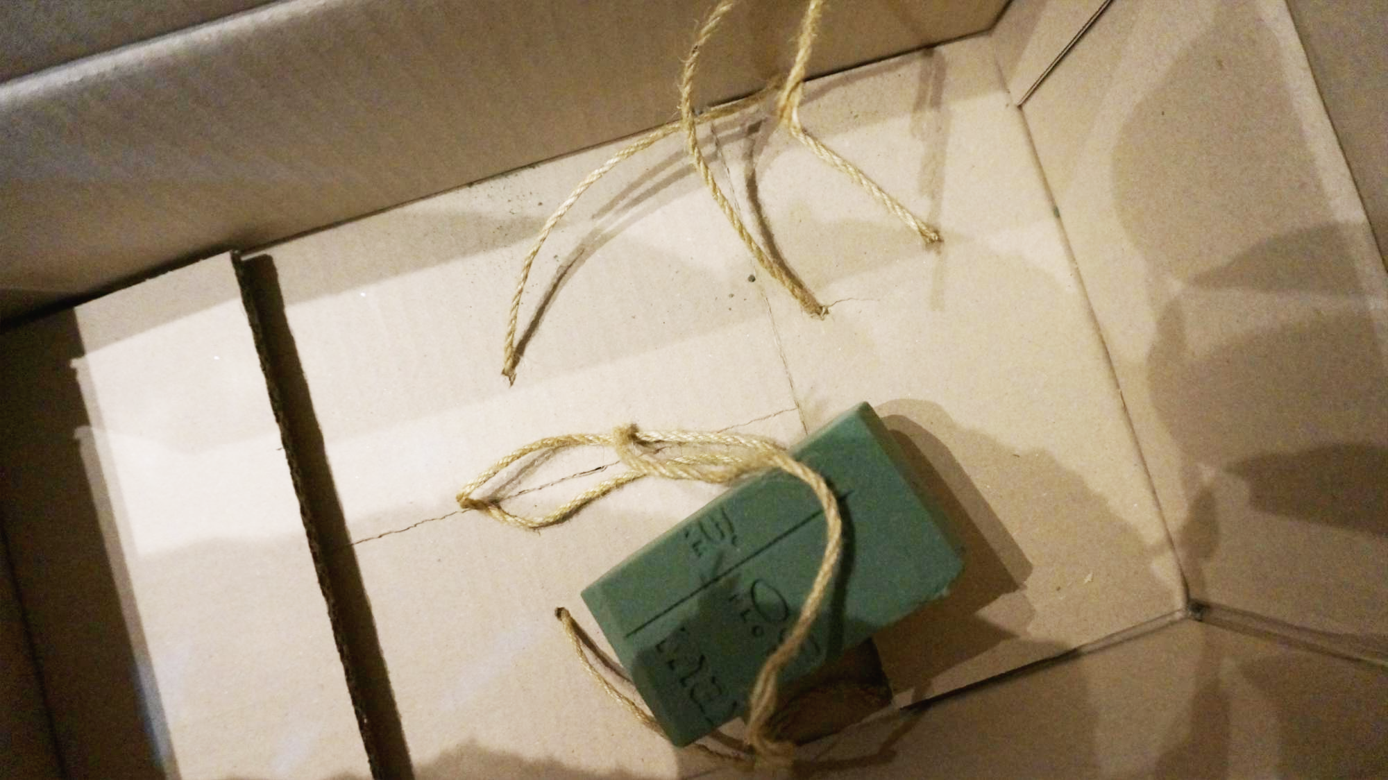 택배상자를 열어보니 얇은 종이 한장이 덮여있었어요.