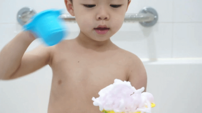동글이는 목욕컵에 담긴 거품을 보더니 아이스크림이라며 반가워하더군요.