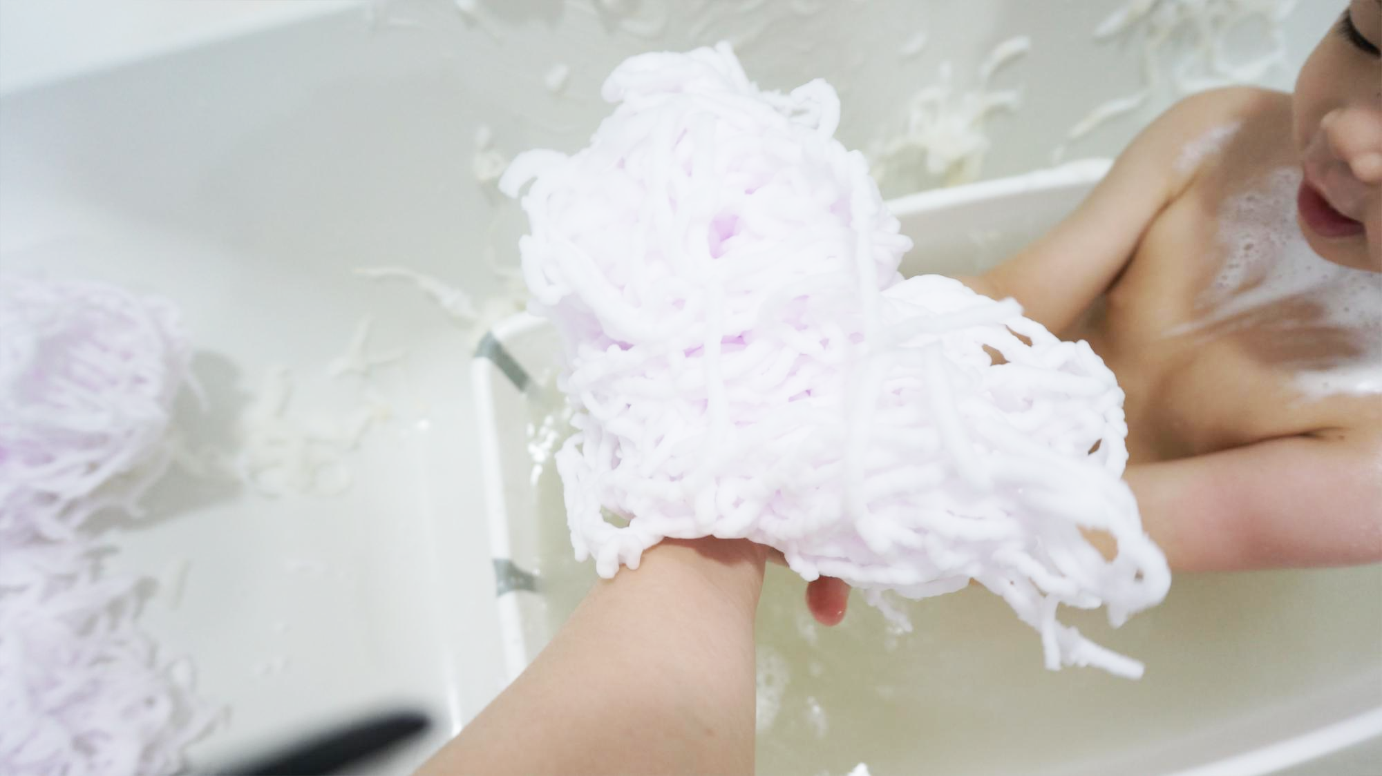 거품이 단단해서 목욕놀이 컵에 채워 넣고 그 위에 또 컵으로 누르는 놀이도 재미있었어요.