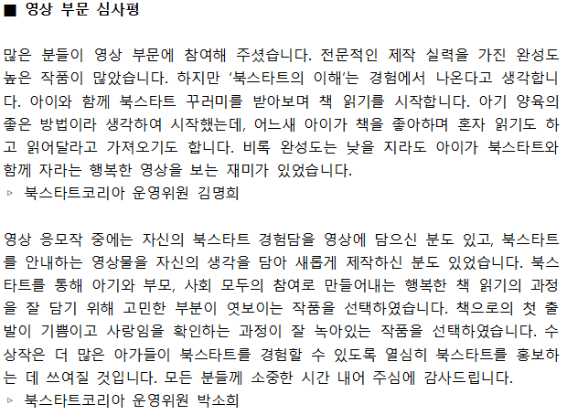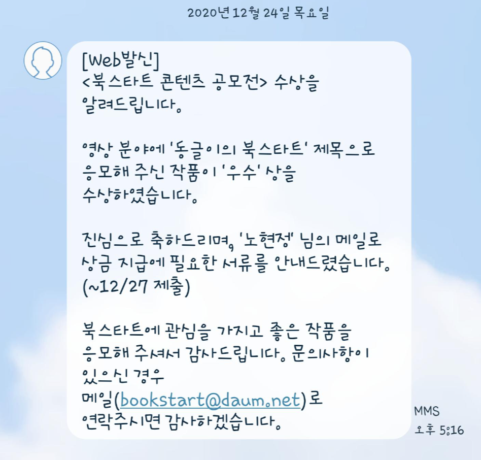 2020 북스타트 콘텐츠 공모전에서 우수상을 수상하게 되었어요.