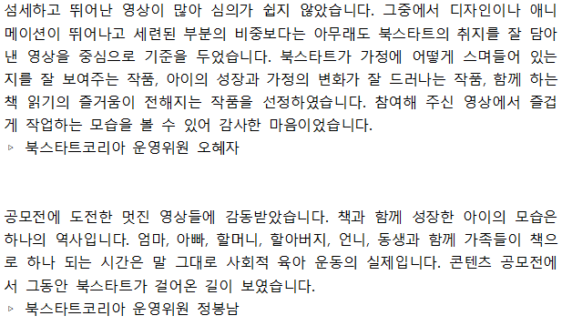 영상 부문 심사평을 살펴보다가 울컥해서 쫌 울었어요.
