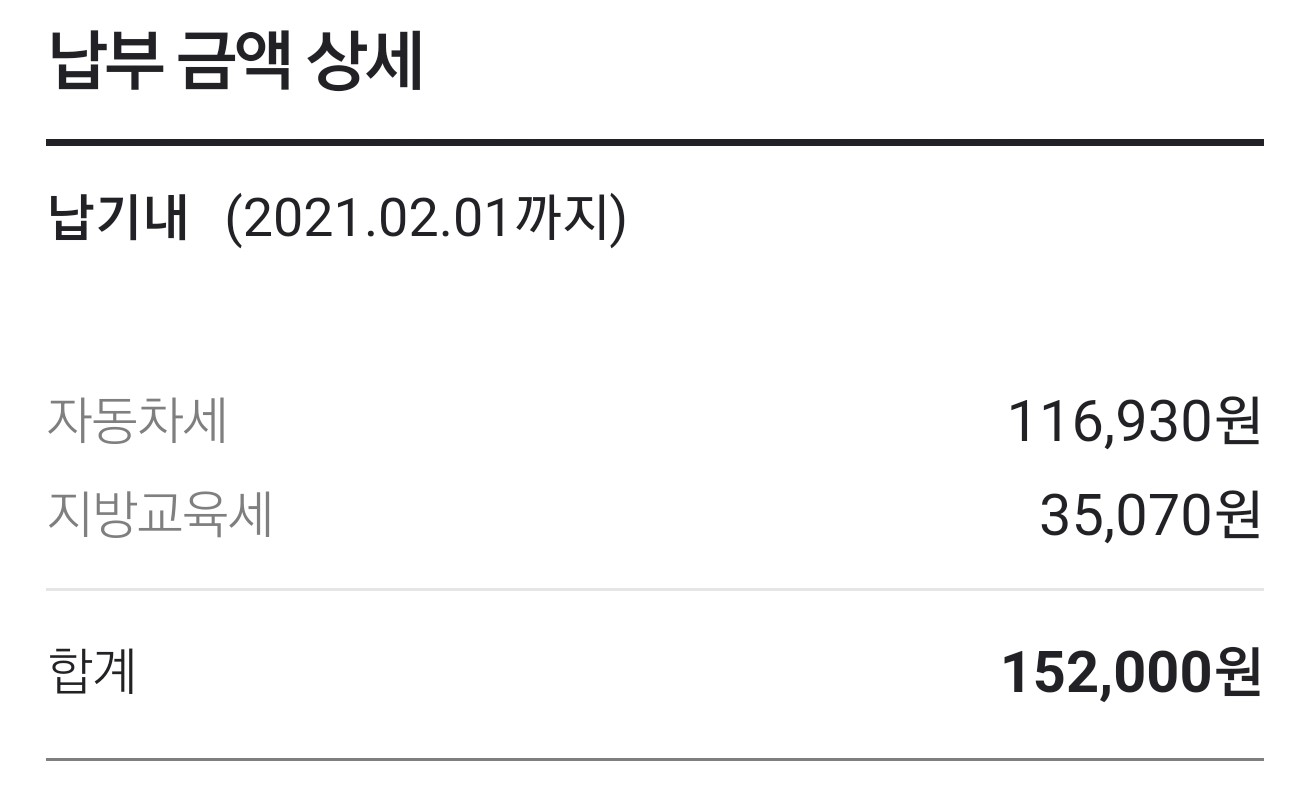 자동차세는 자동차세와 지방교육세를 하반 금액을 납기내에 내도록 되어있더군요.