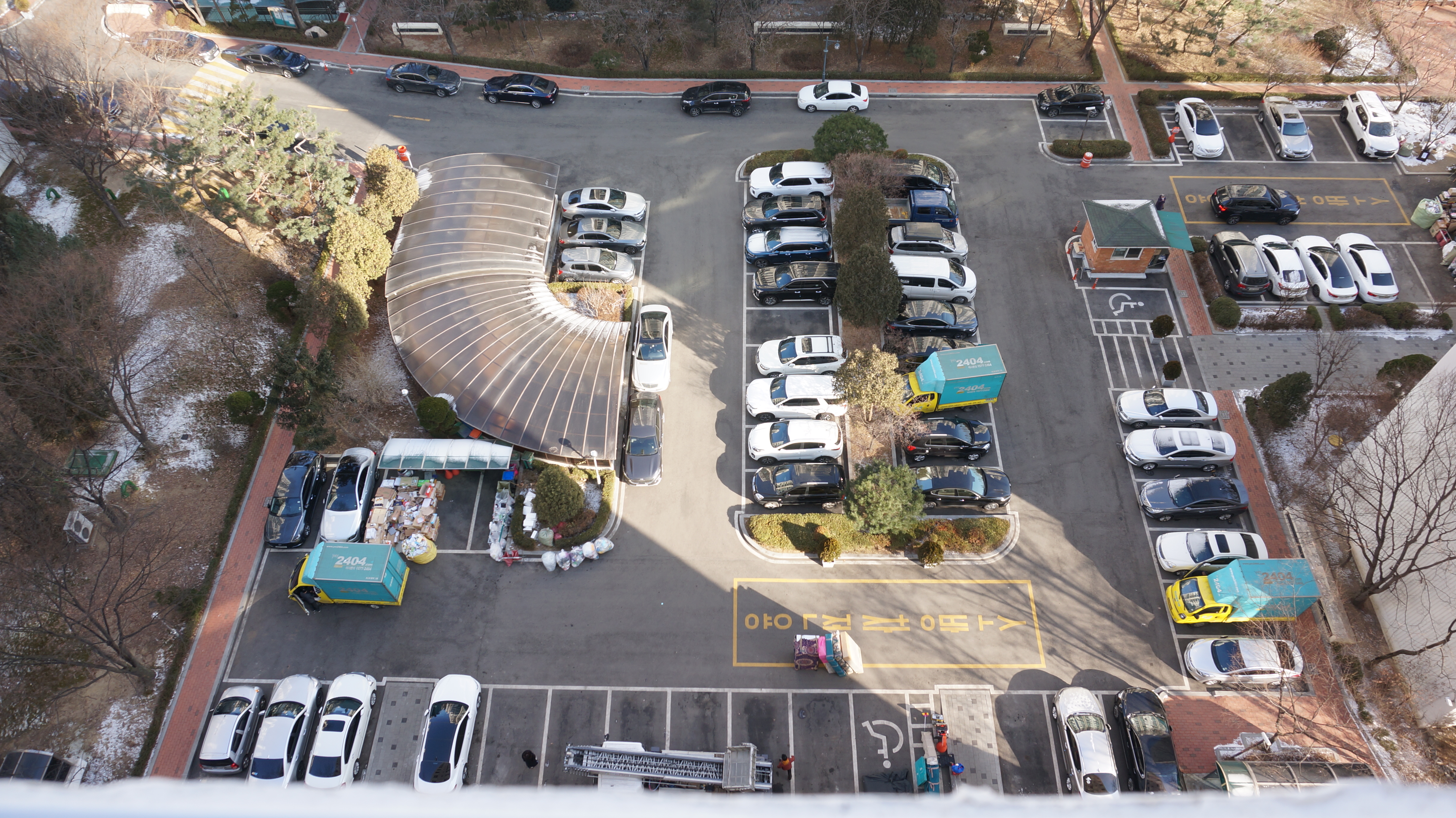 사다리차를 이용해서 이사하기 위해 입주민분들께 양해를 구하고 주차자리를 확보했네요.