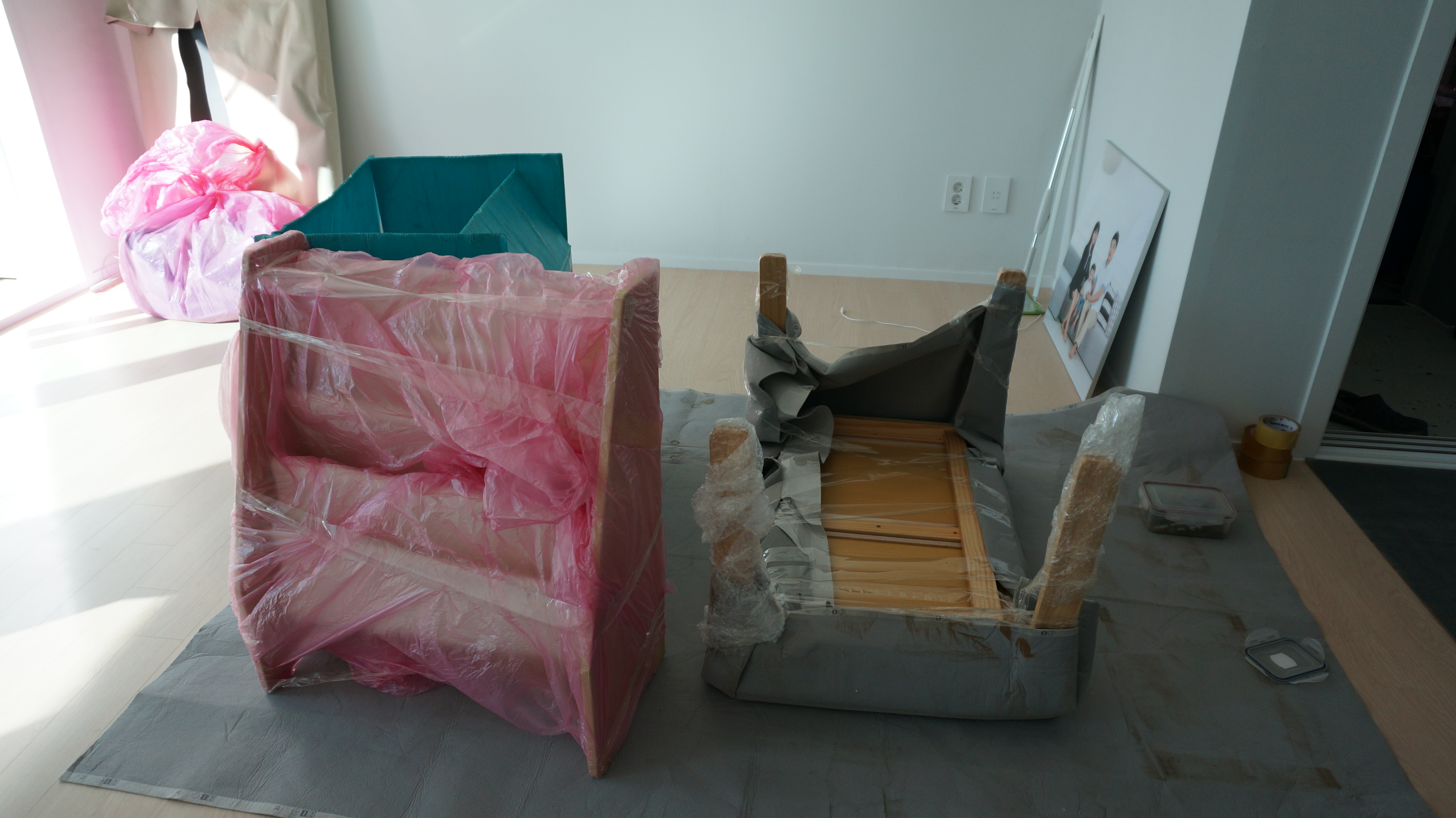 이삿짐 들어올 때는 시간 변경이 한 시간 가량 있었구요 인테리어가 끝난 집이라 보양작업에 대해 한번 더 부탁드렸어요.