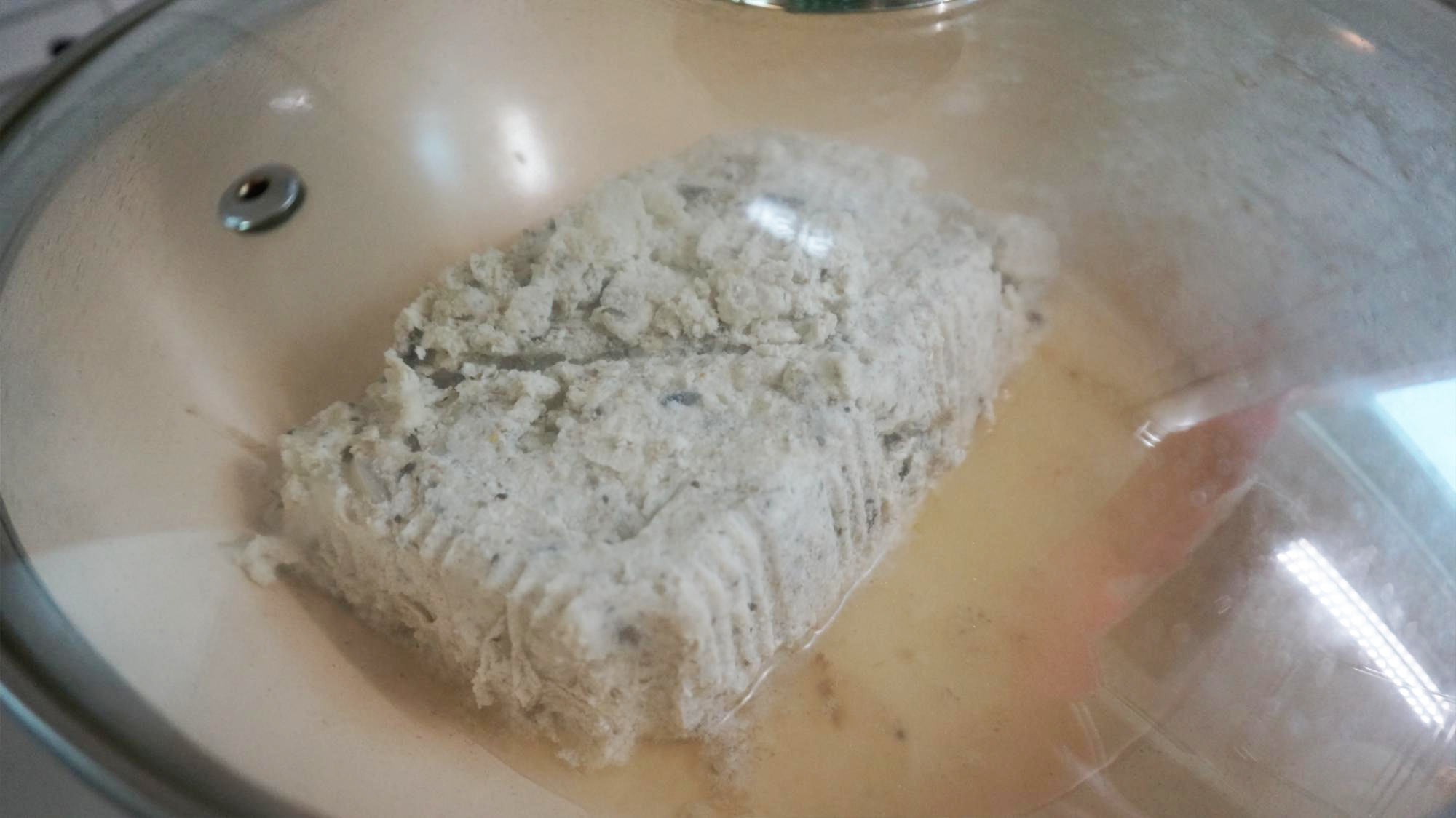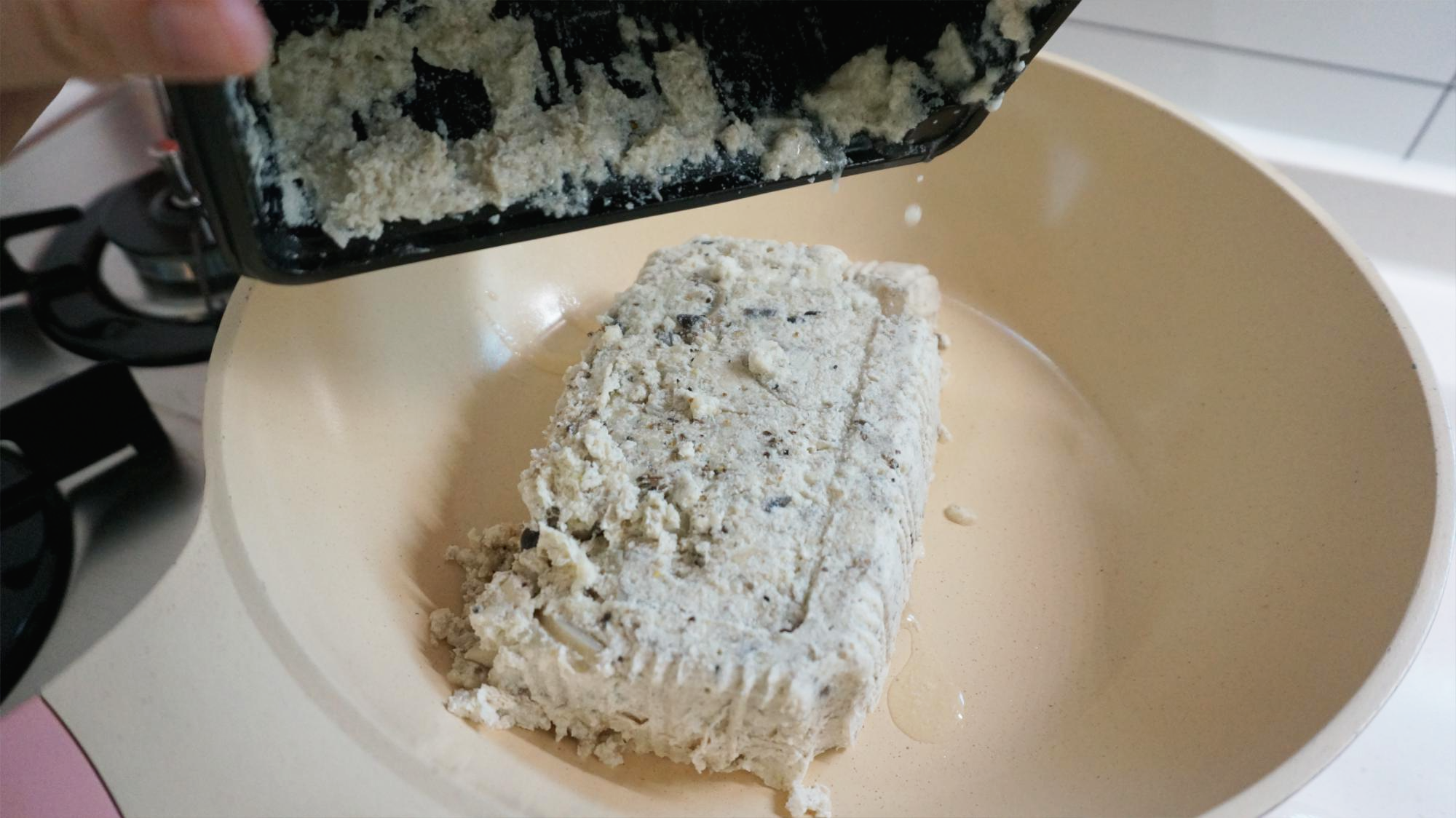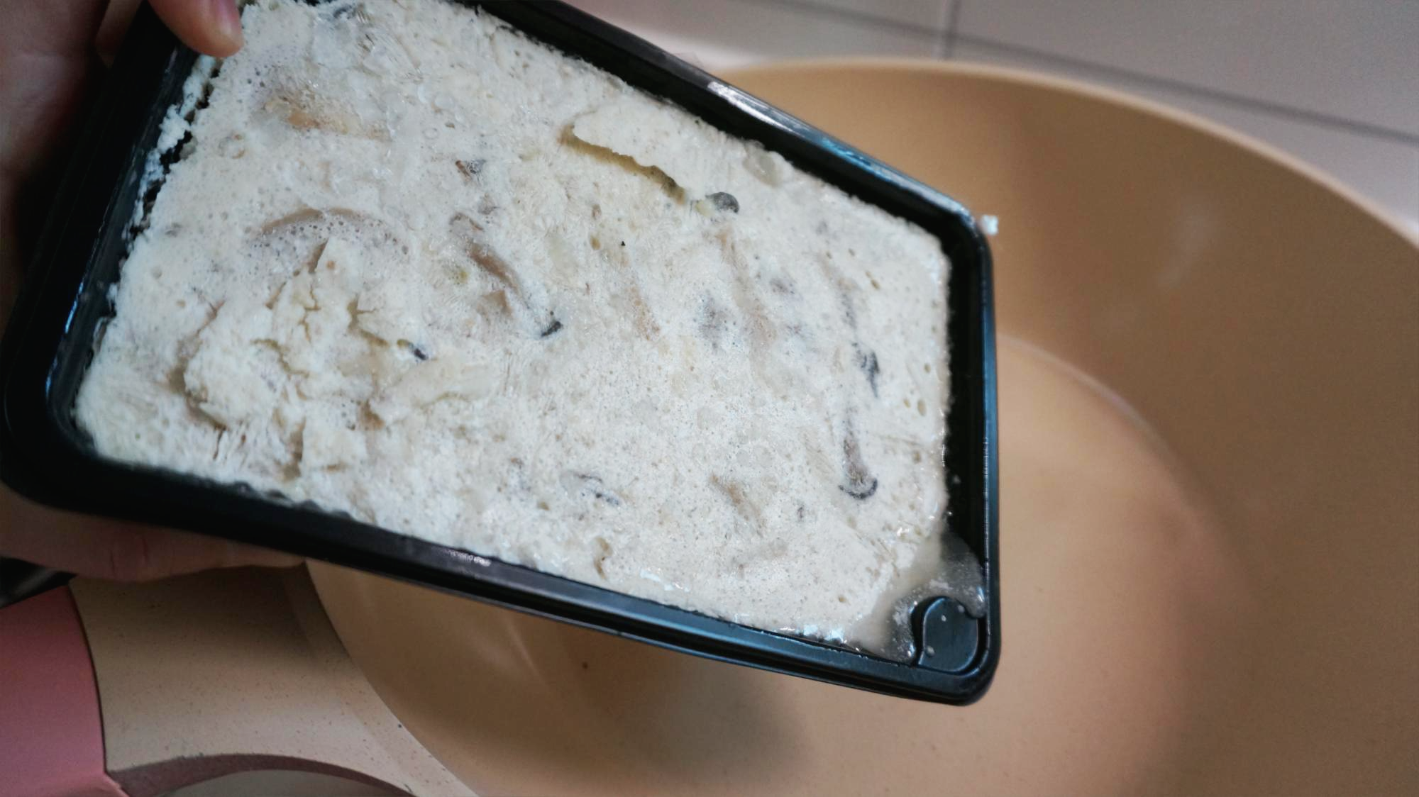 해동된 트러플 크림 소스를 팬에 넣고 끓인다.