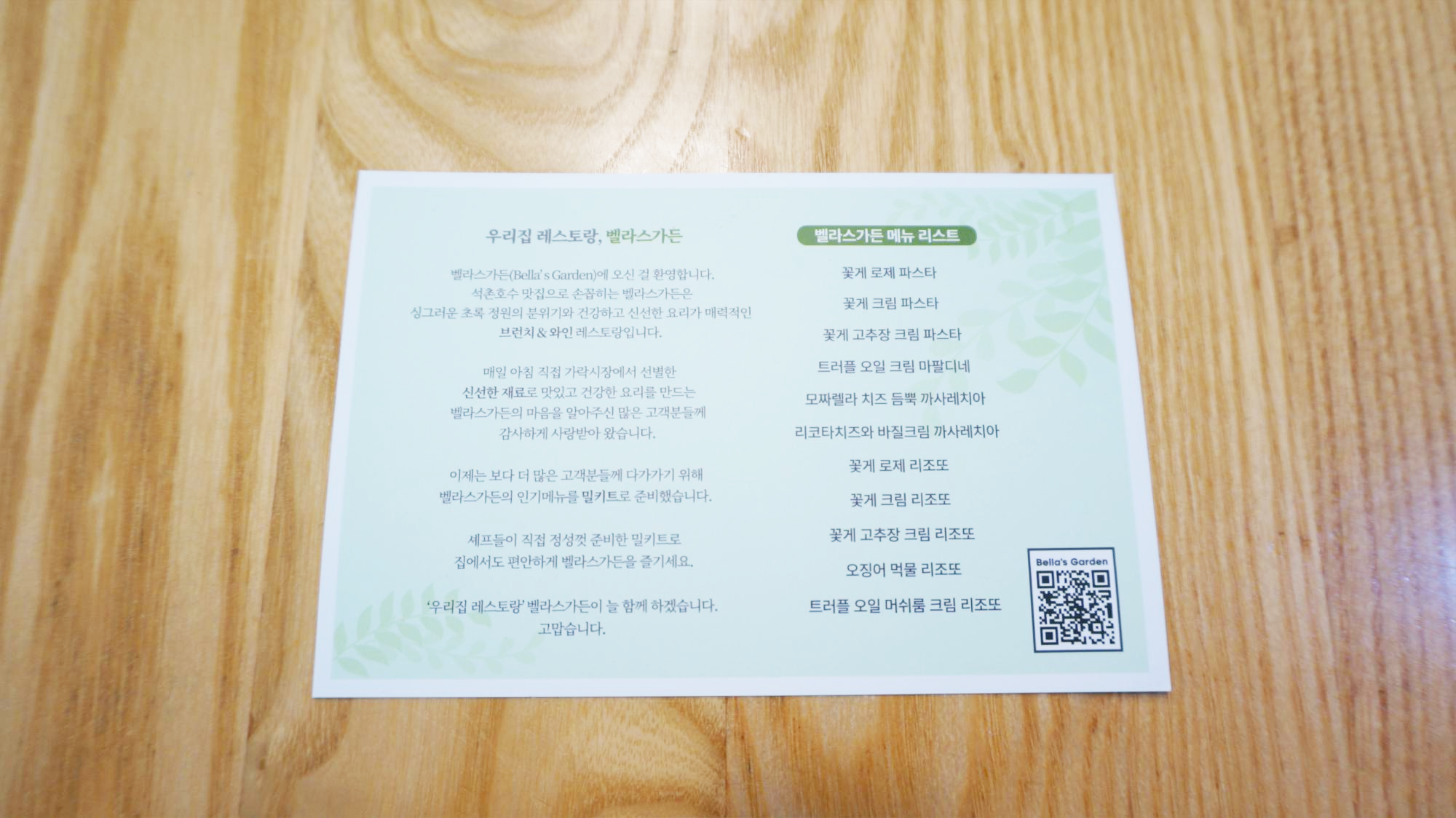 벨라스가든은 석촌호수 맛집으로 분위기 좋고 맛좋은 음식으로 유명한 브런치&와인 레스토랑이예요.
