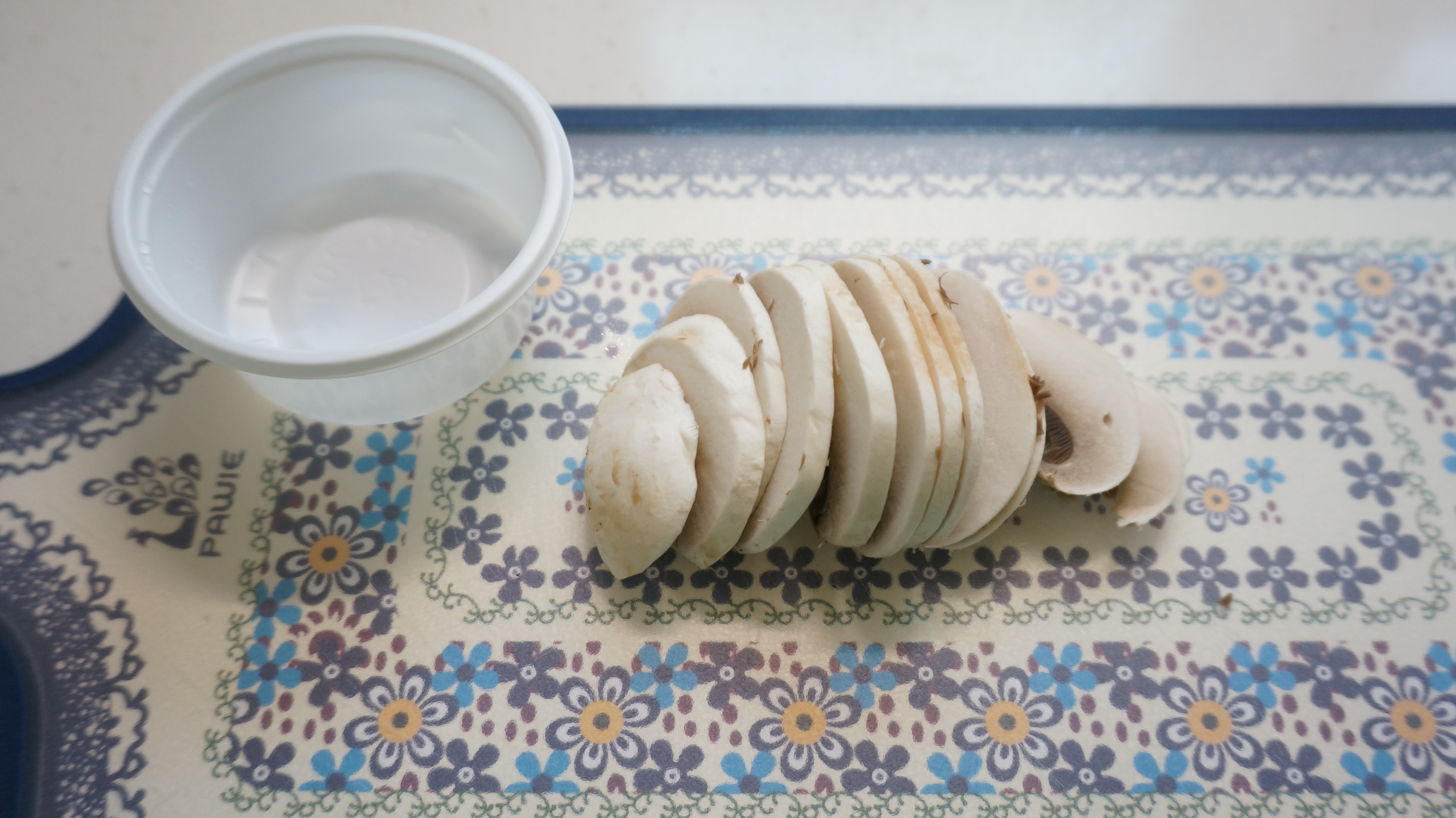 그동안 양송이 버섯을 슬라이스 해둔다.