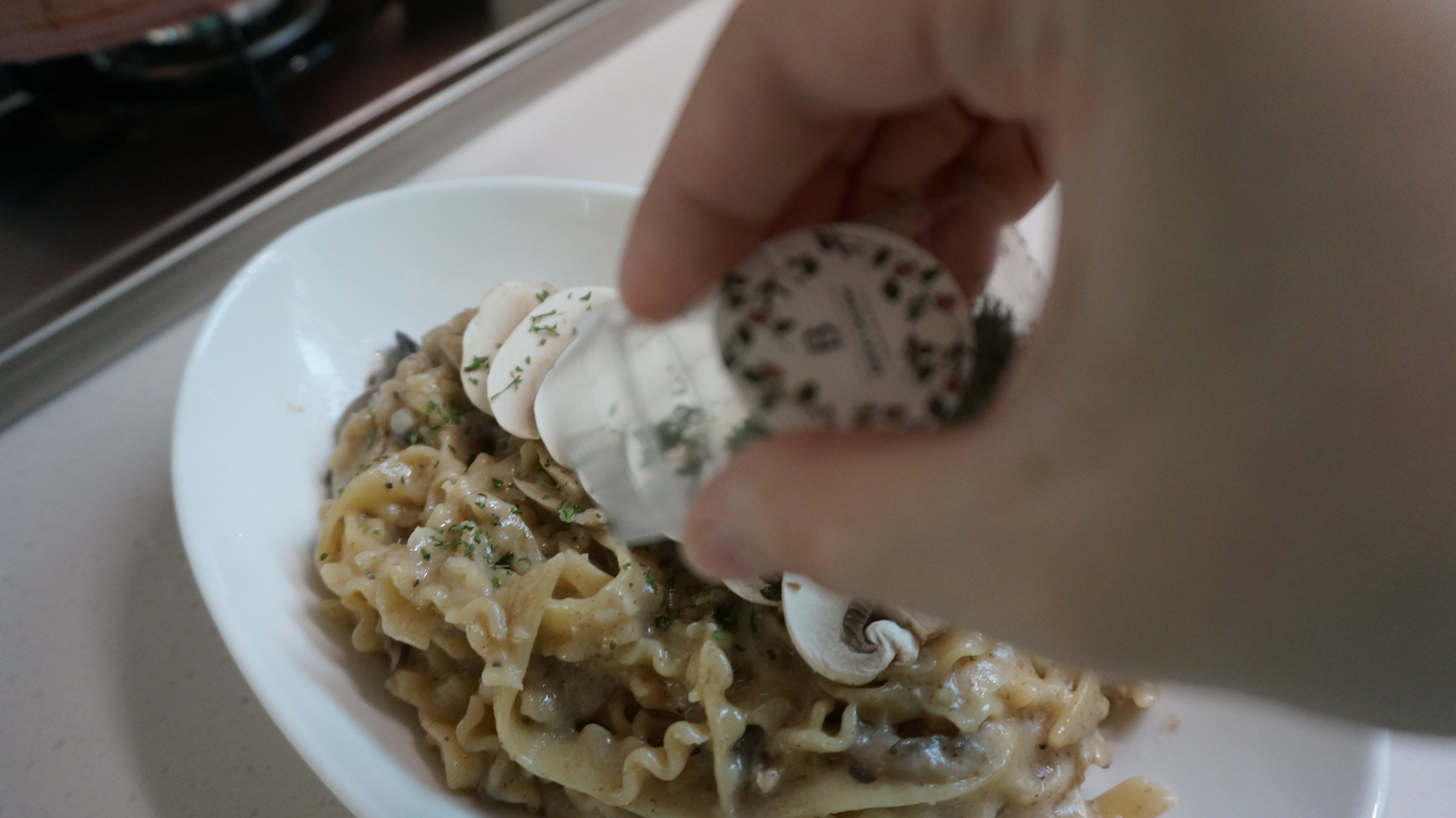 파슬리가루를 솔솔 뿌리고 트러프오일도 파스타 위에 뿌려준다.