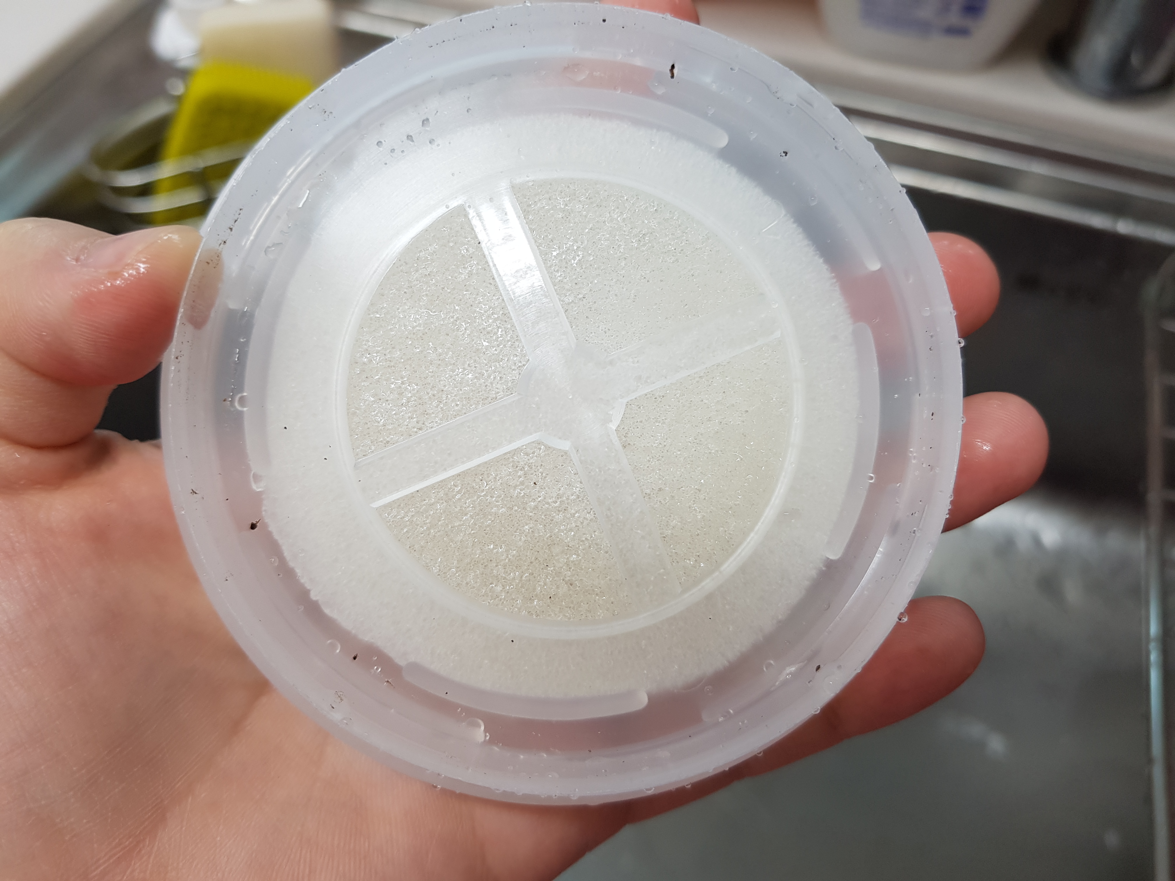 스폰지 뚜껑에 물을 흠뻑 적신후 뚜껑 닫기(뚜껑에 물이 고여있지 않도록 한다)