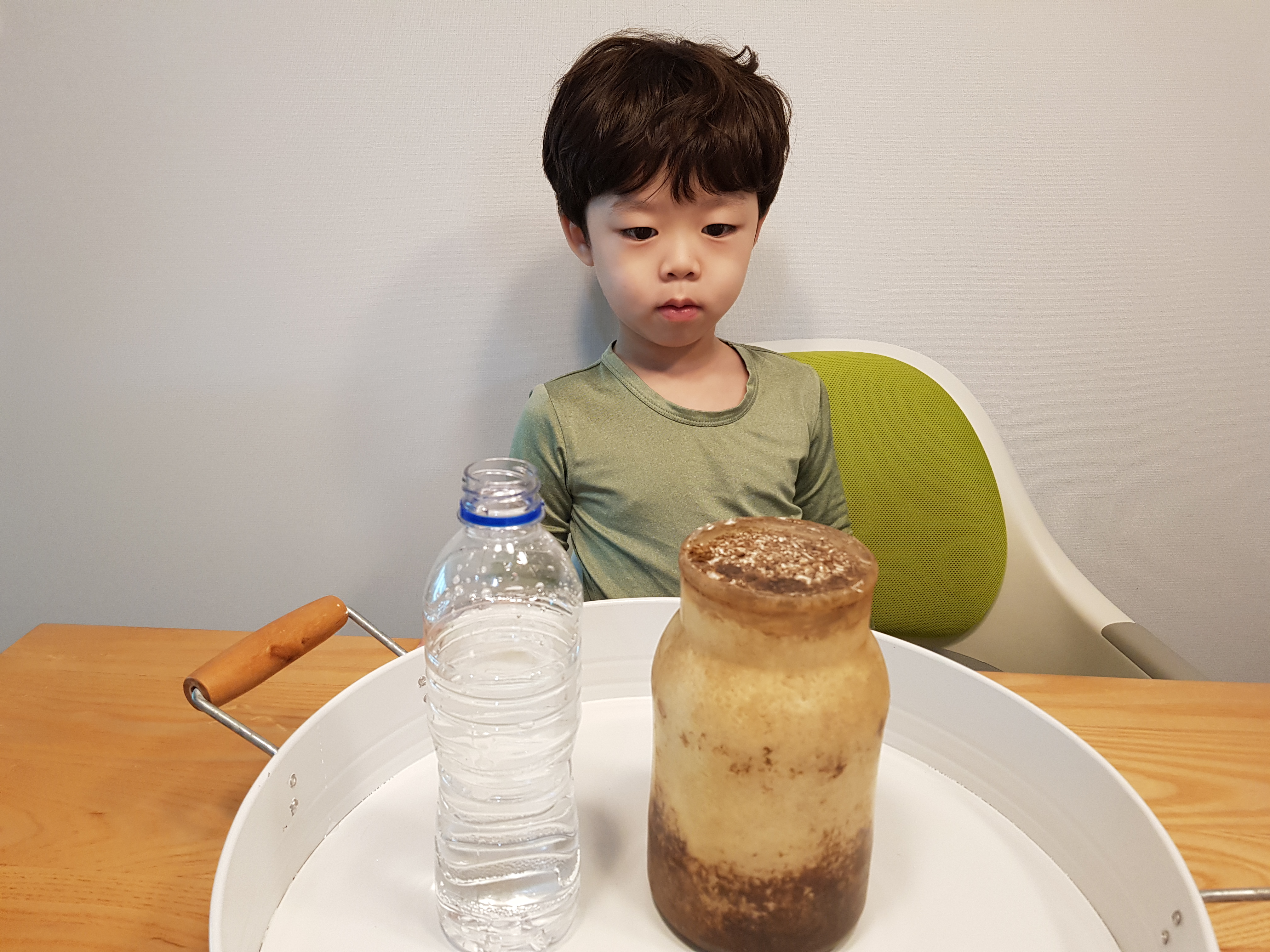 뚜껑을 닫아 병을 거꾸로 세워줍니다.