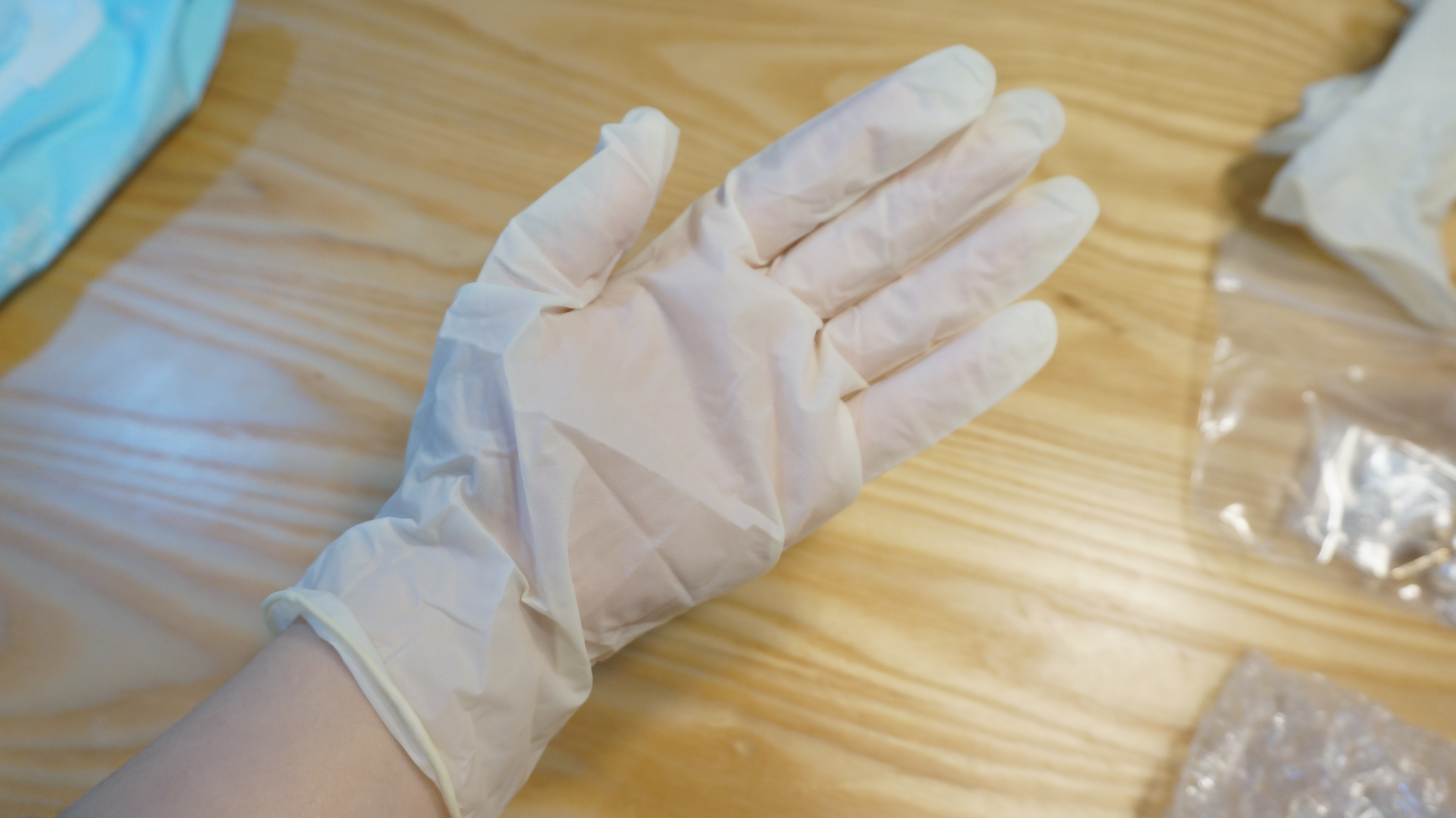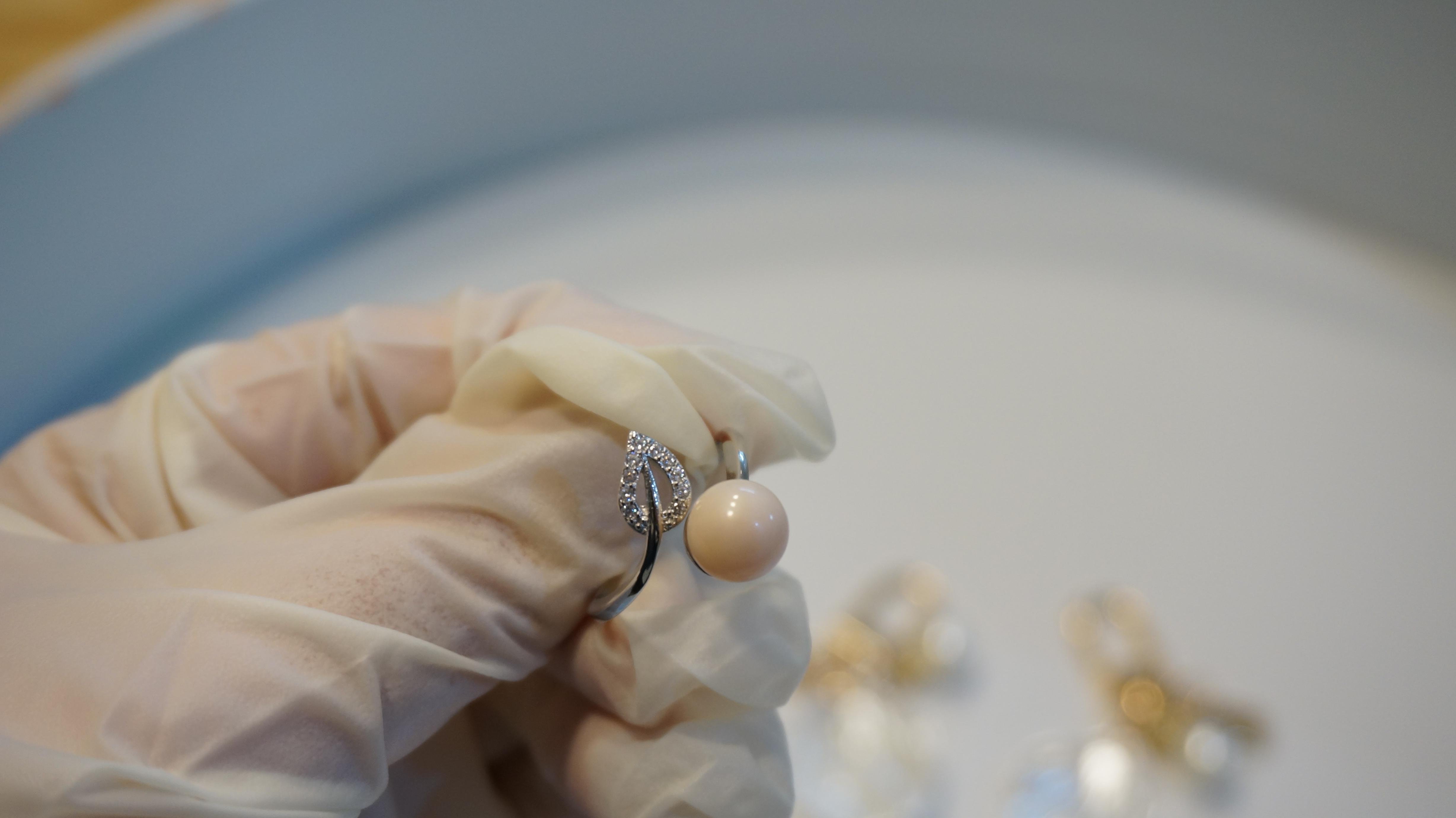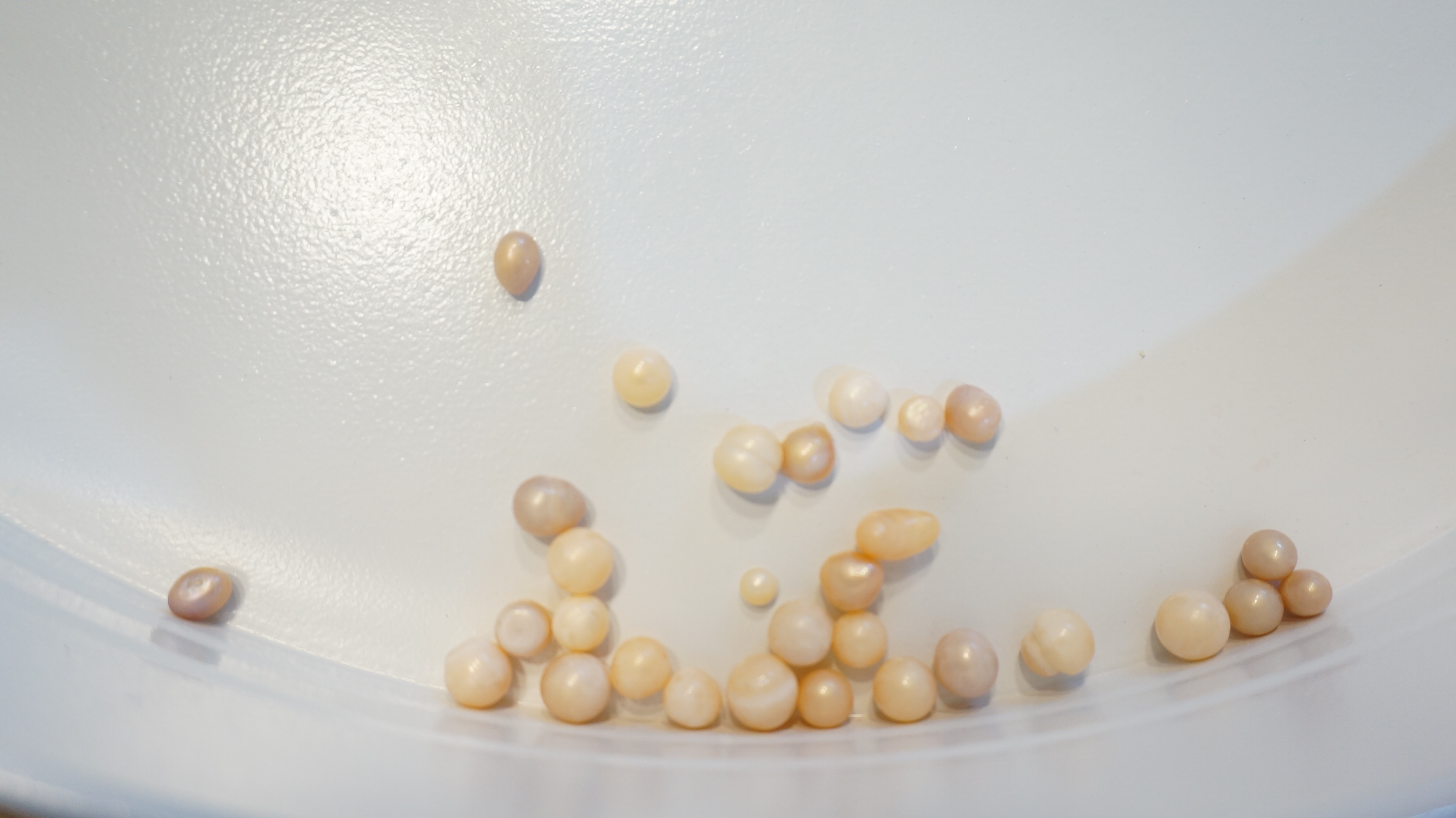 라텍스 장갑을 끼고 진주를 채취해주었어요.