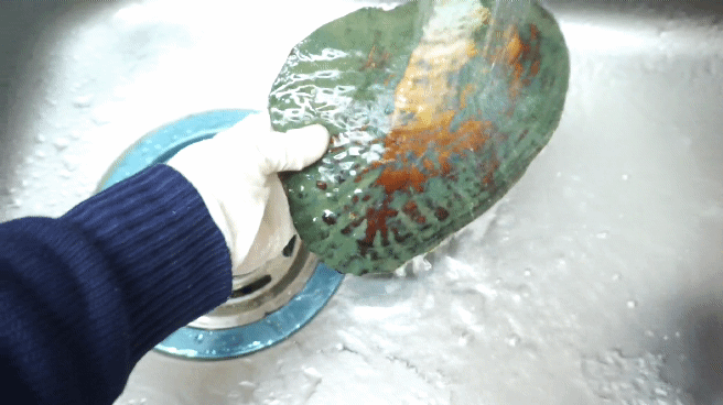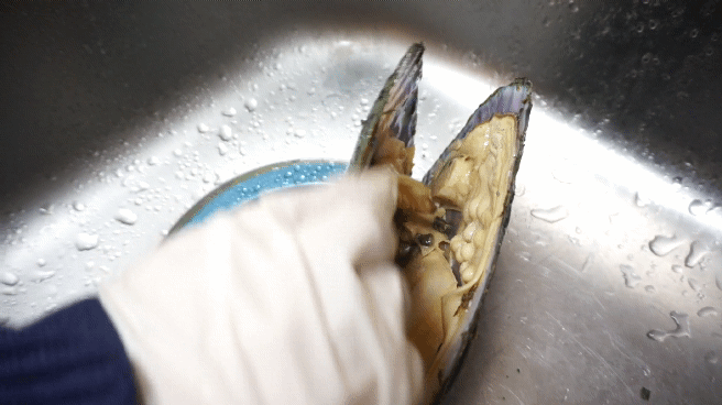 흐르는 물에 진주조개를 깨끗이 헹구어 줍니다.