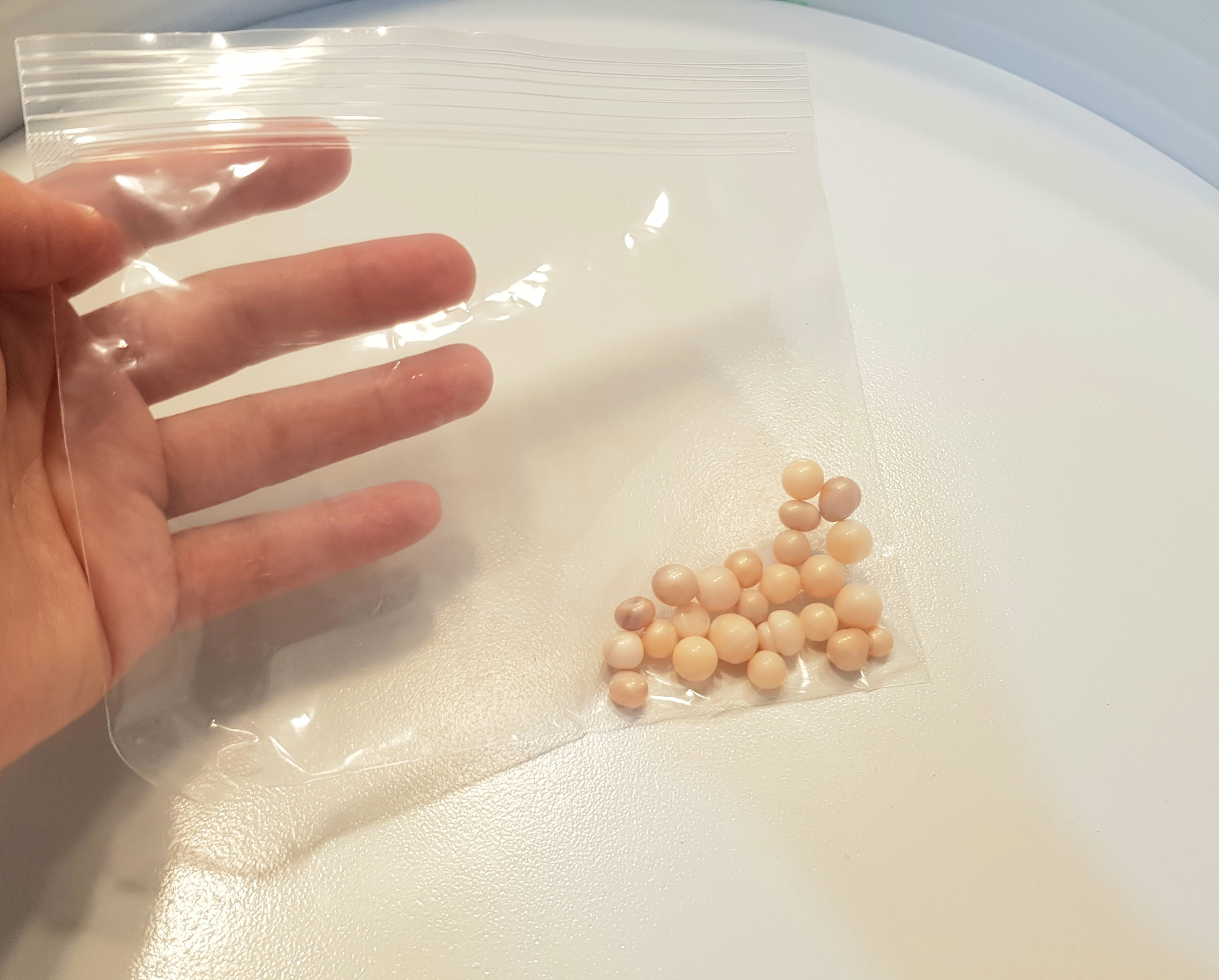 보통 10개~30개의 진주가 들어있다고 하던데 제가 받은 조개는 진주개수가 많은 편이었나봐요.