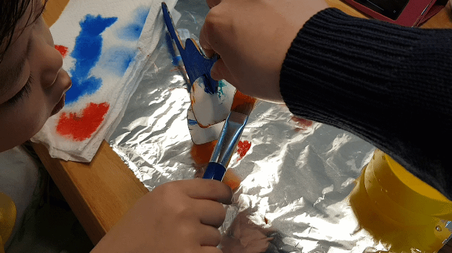 저는 트레이를 놓고 놀이할 때가 많아서 생각 못했었는데 호일을 깔고 활동하니 마음 놓고 미술놀이 할 수 있었어요.