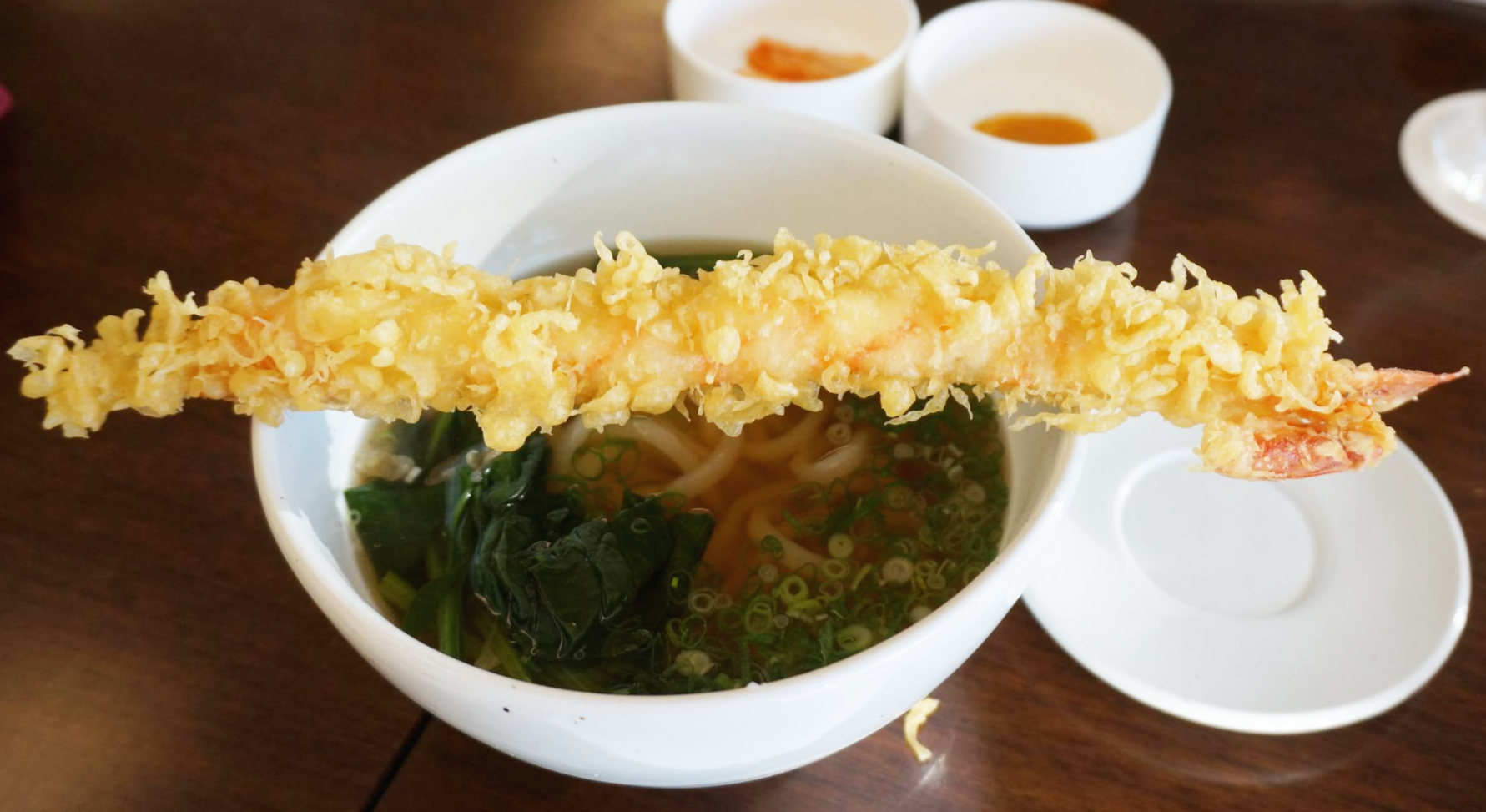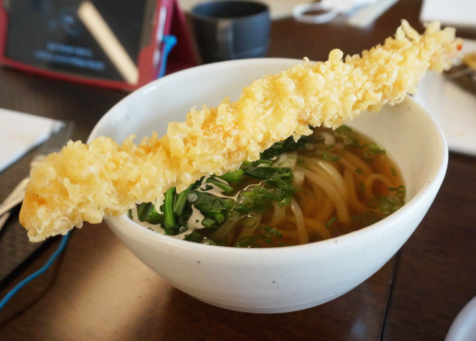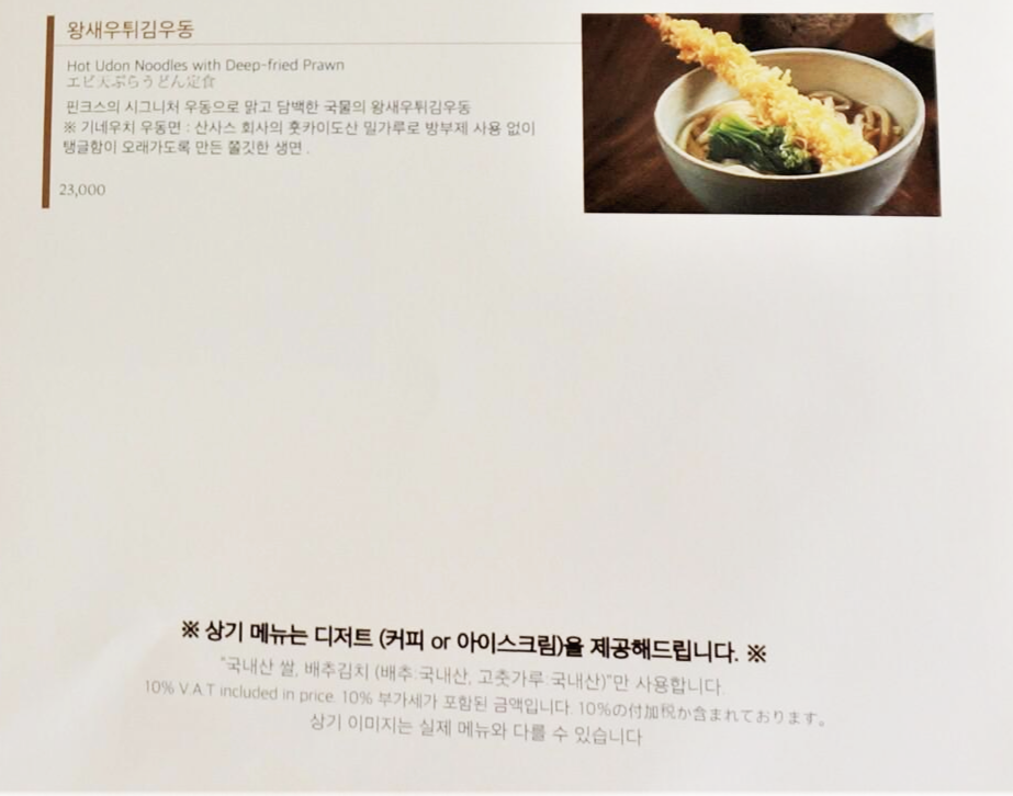 핀크스 시그니처 우동으로 맑고 담백한 국물의 왕새우튀김우동