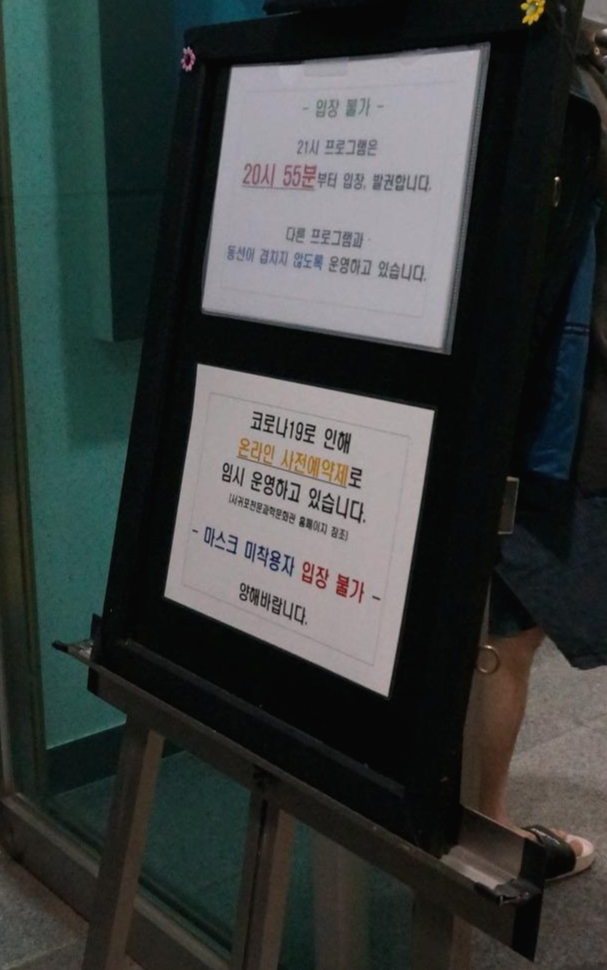 금요일 저녁 8시, 9시 / 토요일 저녁 8시, 9시 이렇게 네번 진행되는데 코로나로 입장인원을 제한하고 있어 빠른 손놀림의 예약이 필요합니다.