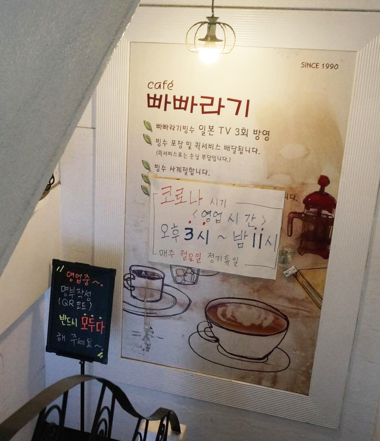 코로나 확산방지를 위해 명부작성(QR코드) 중이었고 5인이상 금지였어요.