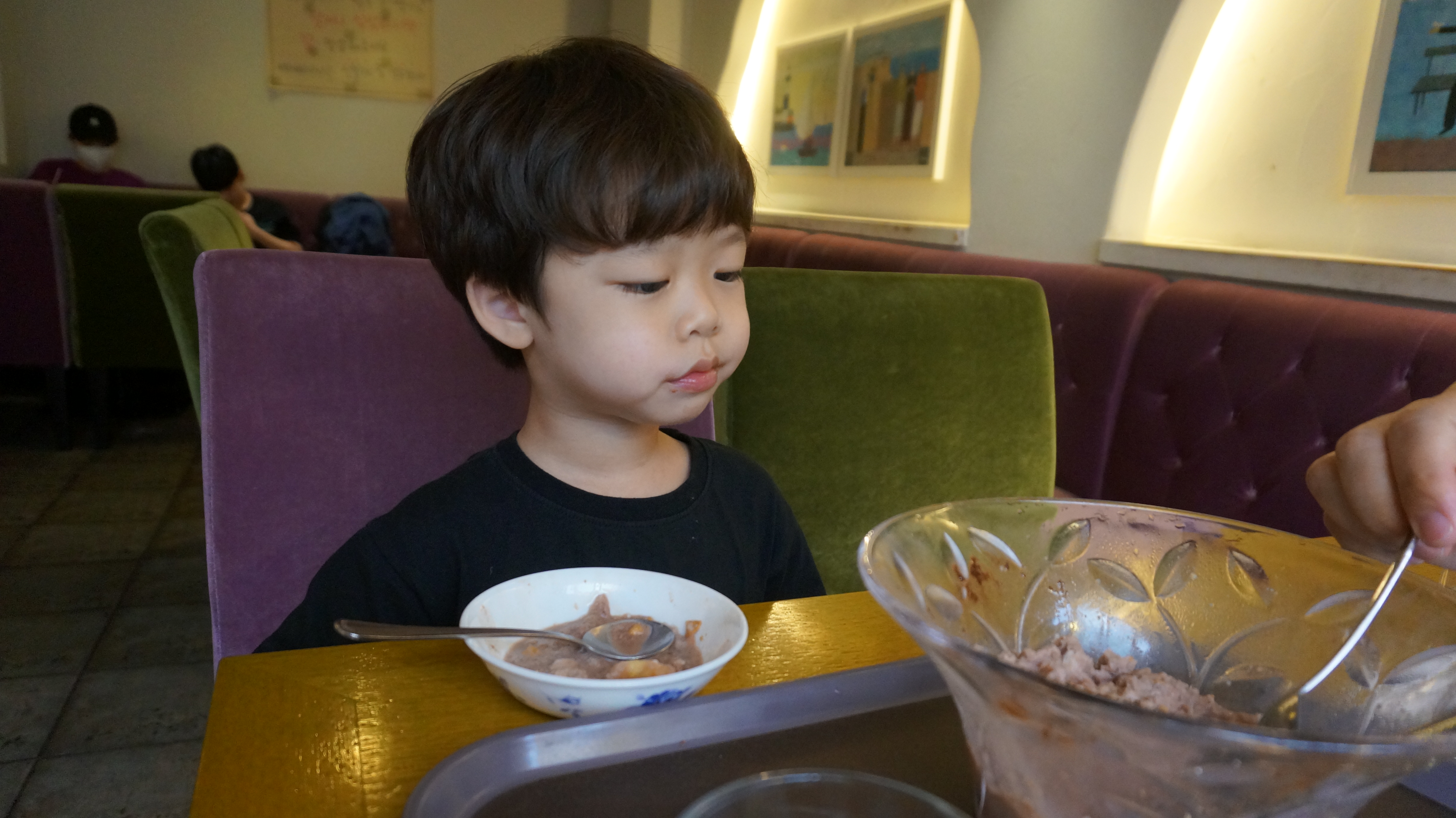 엄마 아빠랑 같이 먹으면서도 본인보다 엄마아빠가 더 많이 먹을까봐 불안해서 눈을 떼지 못하는 동글이였어요.