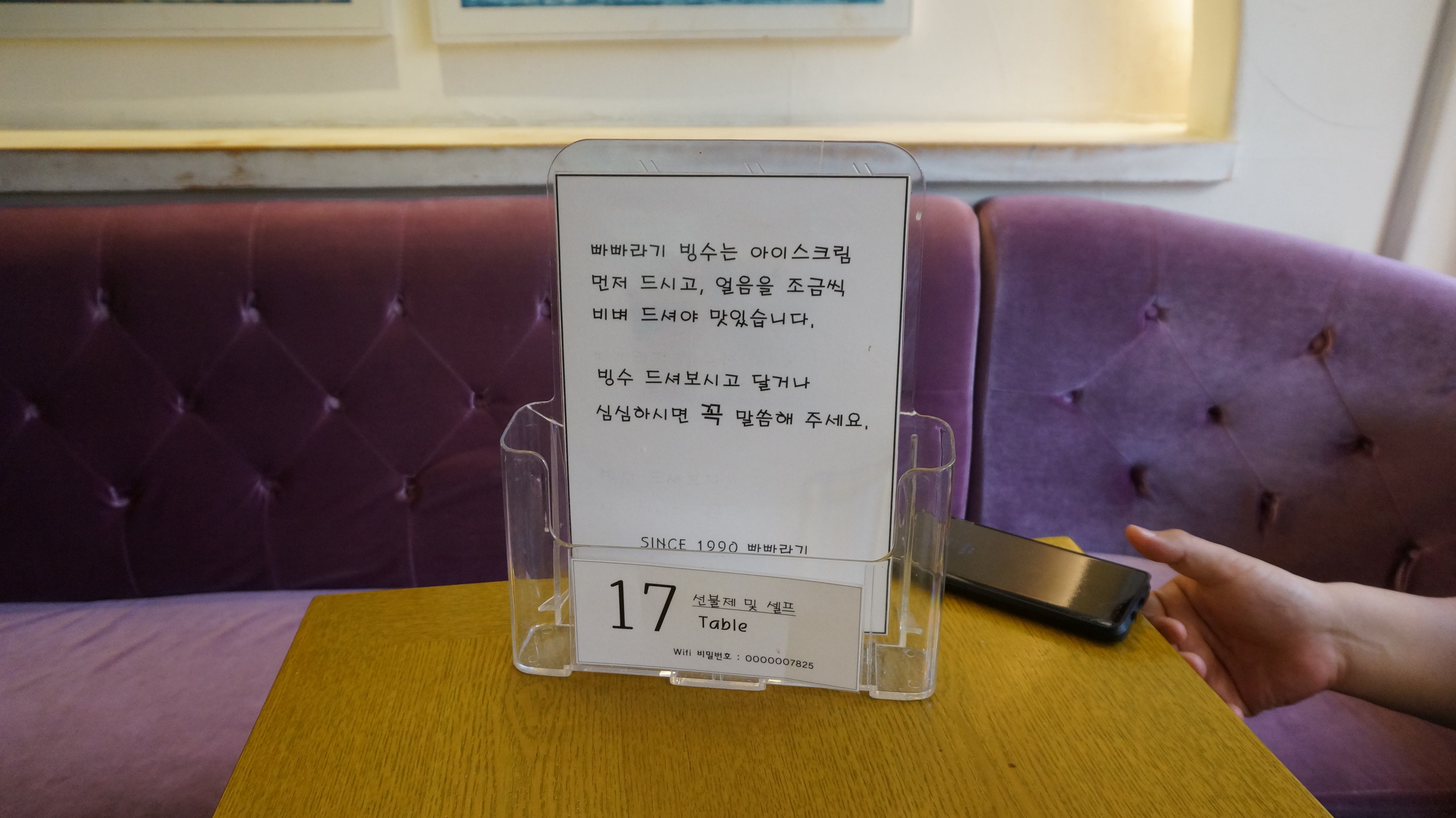 카운터로 가서 테이블 번호 말씀드리고 빙수값부터 지불했어요.