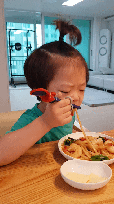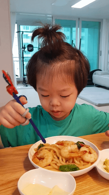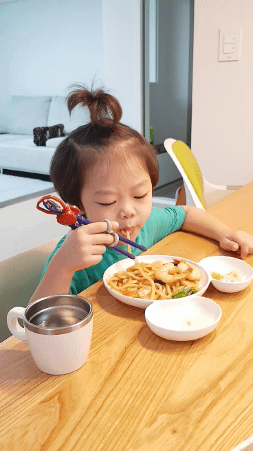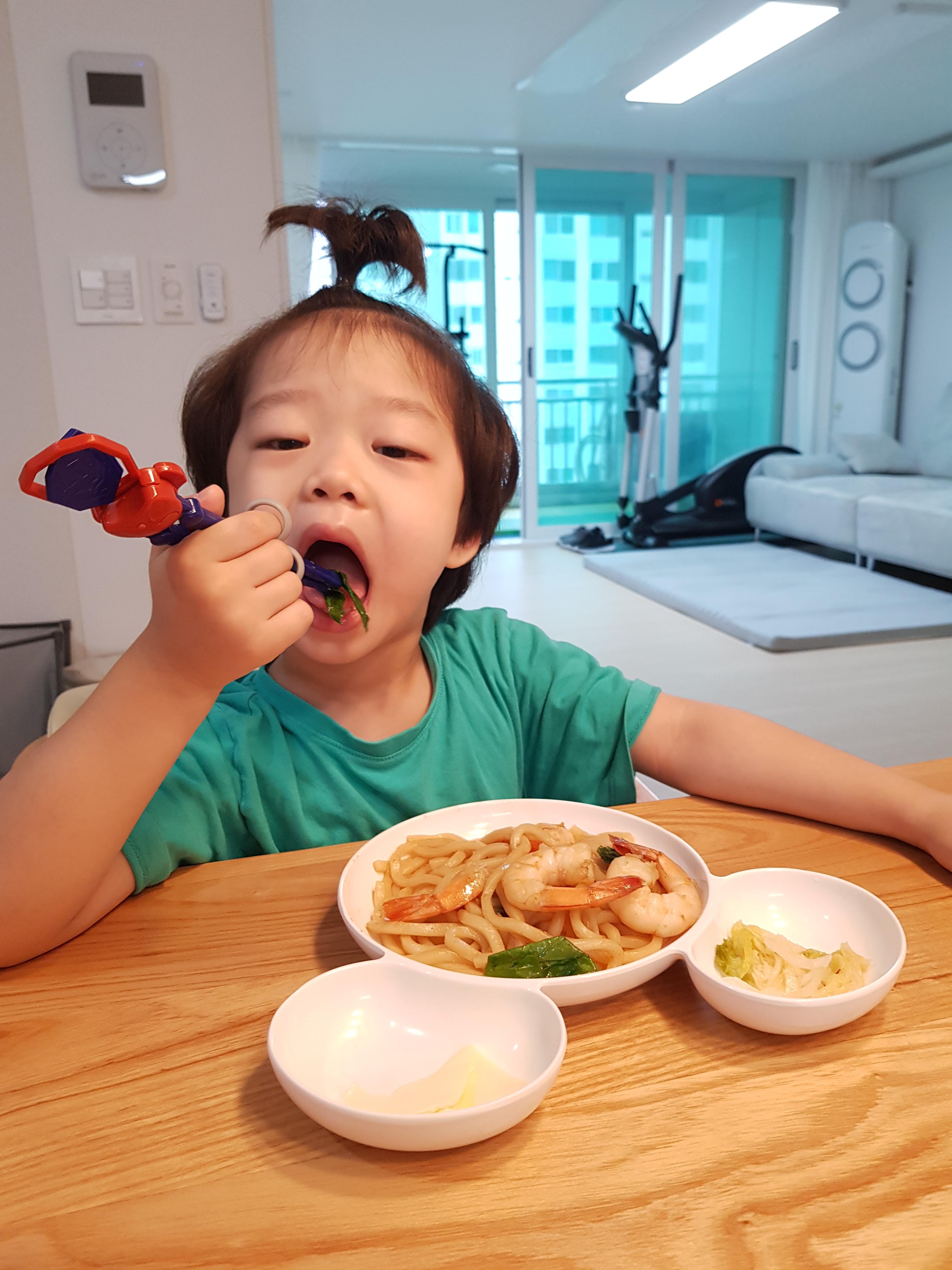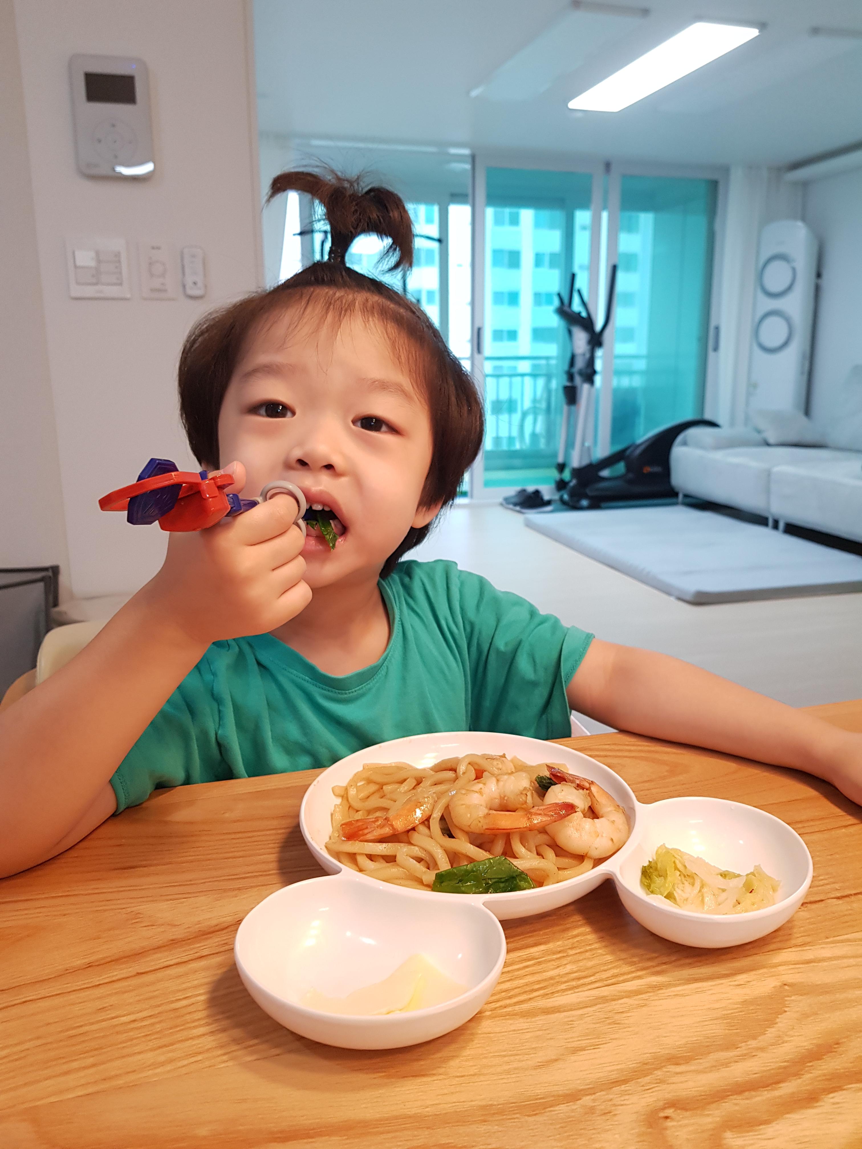 평소 밥먹이는 시간이 전쟁인 동글이가 국수나 떡국은 혼자서도 잘 먹기 때문에 우동으로 메뉴를 고른것도 있지만 청경채를 잘 먹어줄까 걱정도 되었었는데 이렇게 맛있게 먹어주니 뿌듯하더라구요.