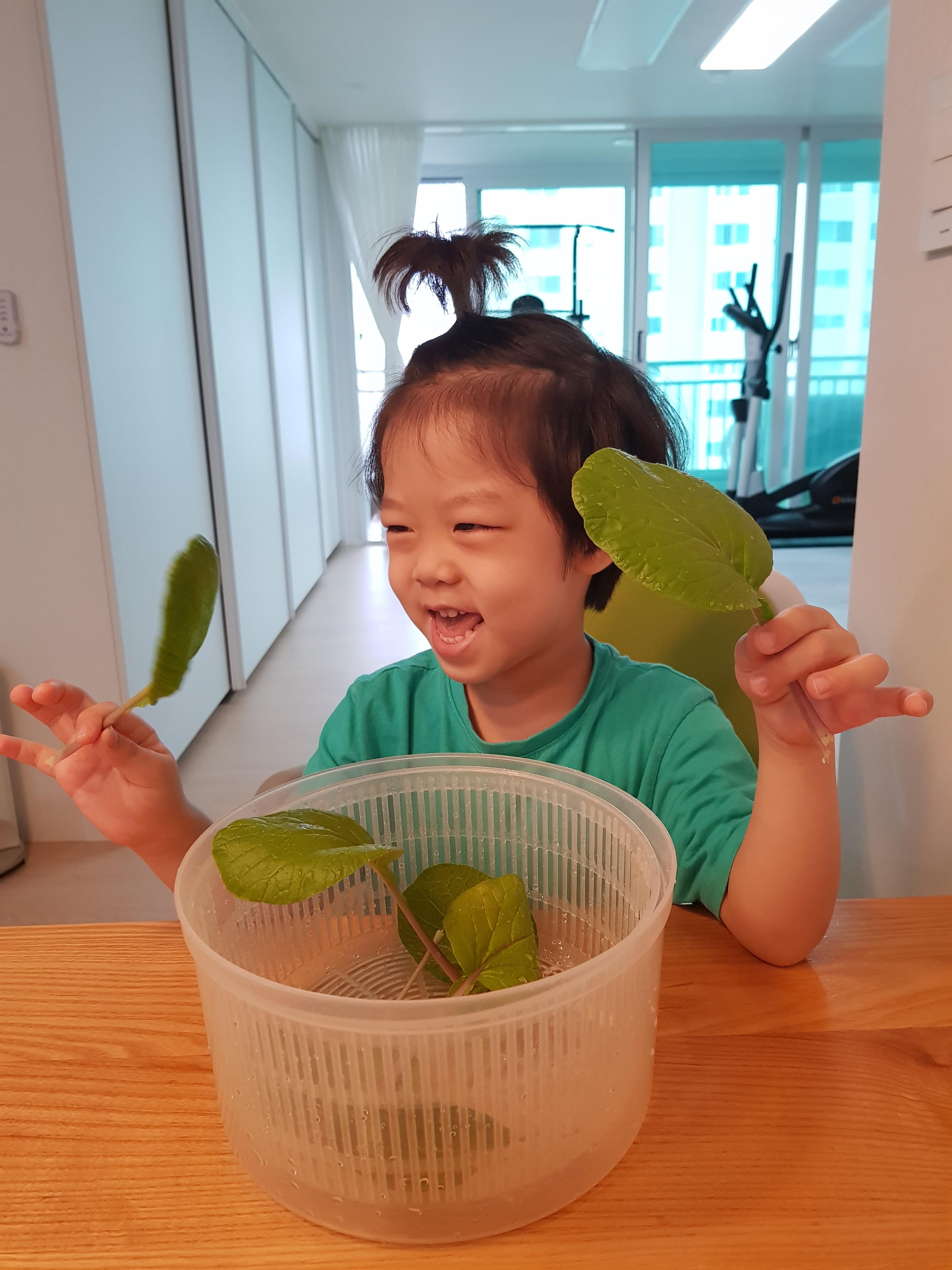 평소 청경채는 잘 먹지 않던 동글인데 키우기 부터 요리까지 참여했더니 너무너무 즐겁게 먹더군요.