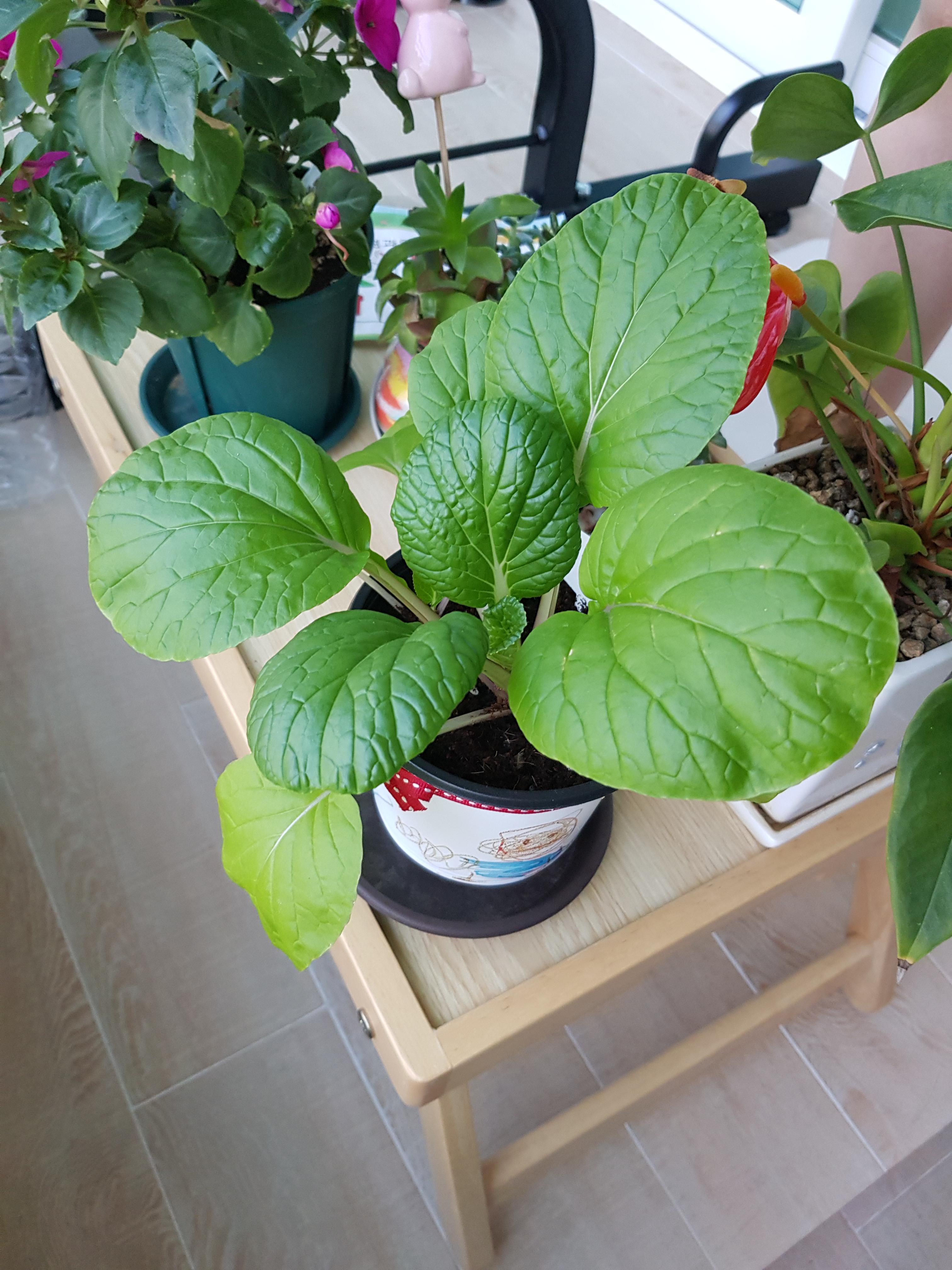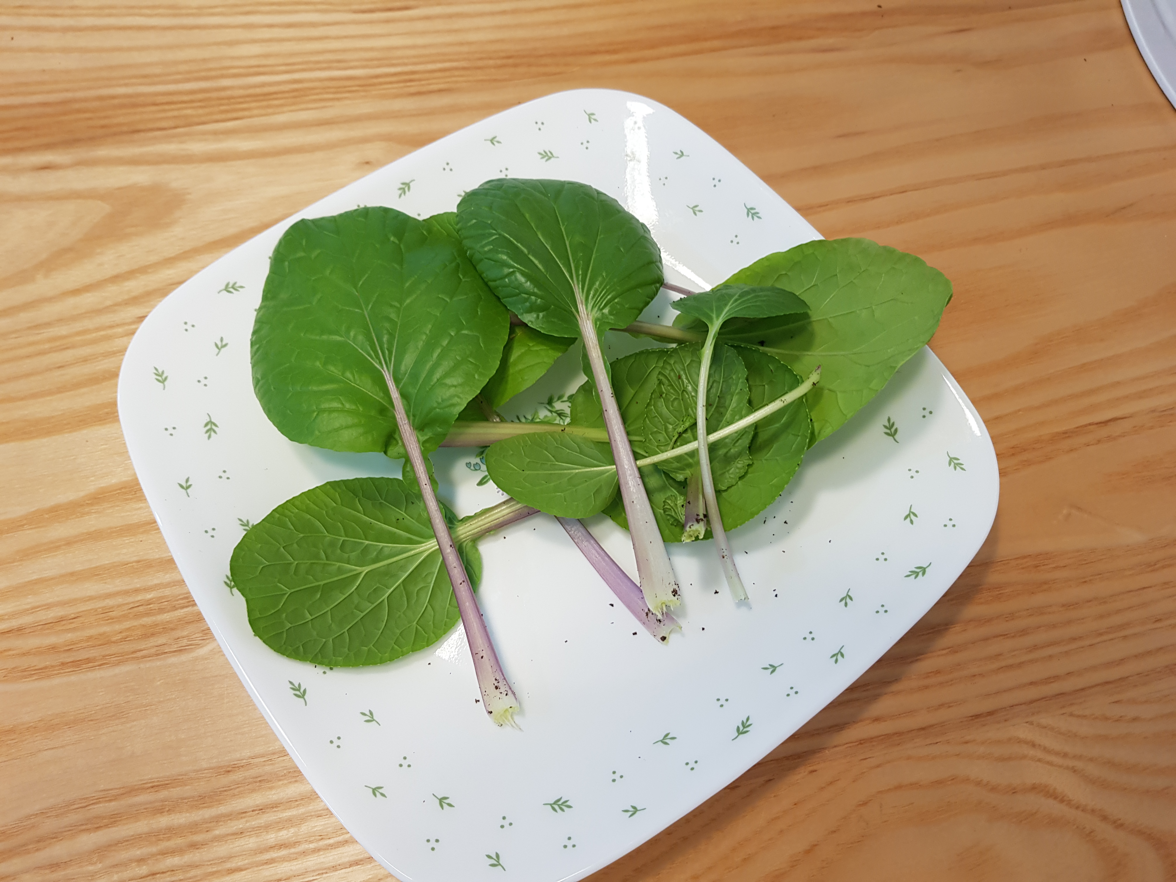 줄기 부분이 얇고 잎사귀도 청경채 보다는 허브의 느낌이 더 나더라구요.