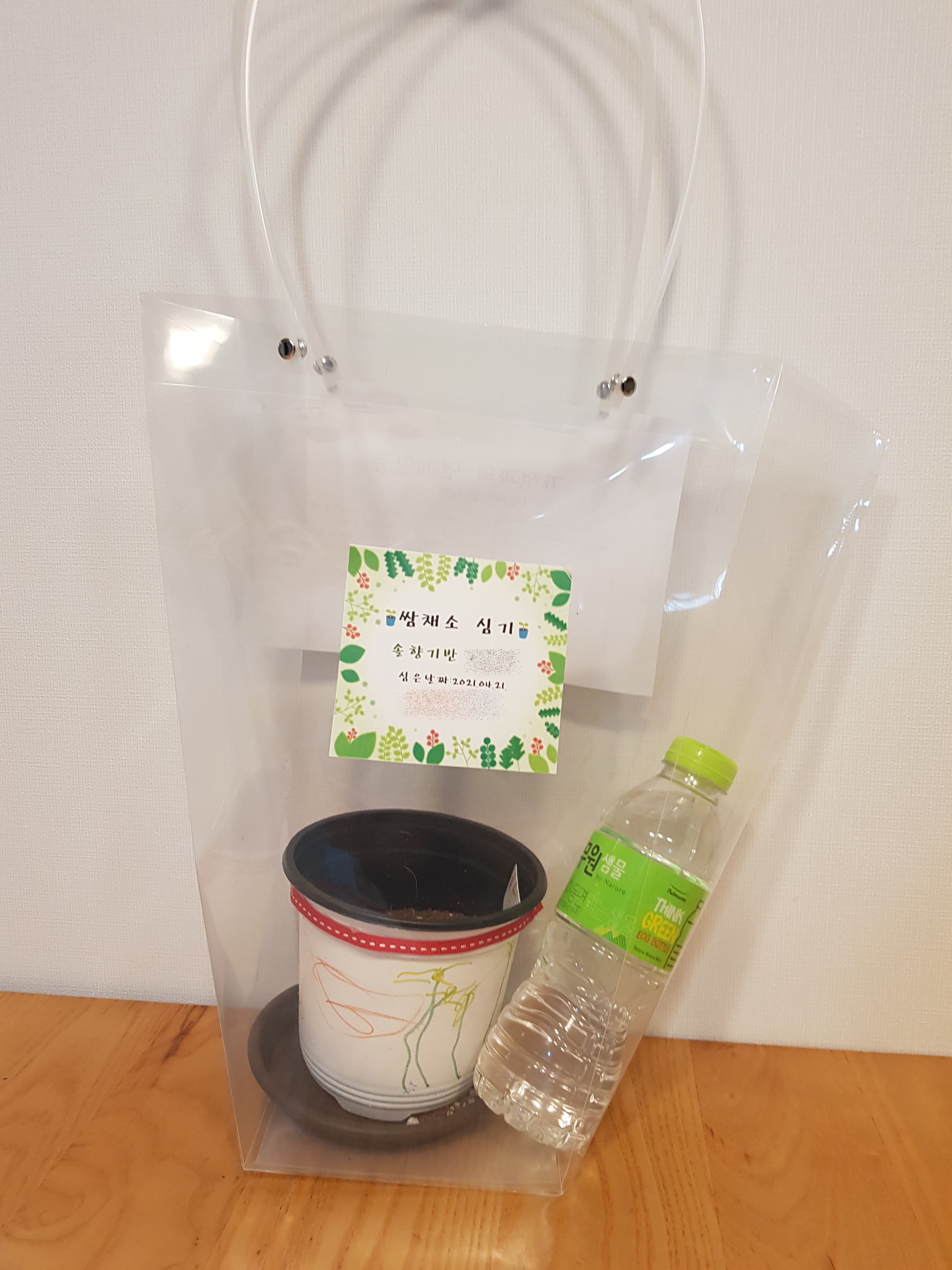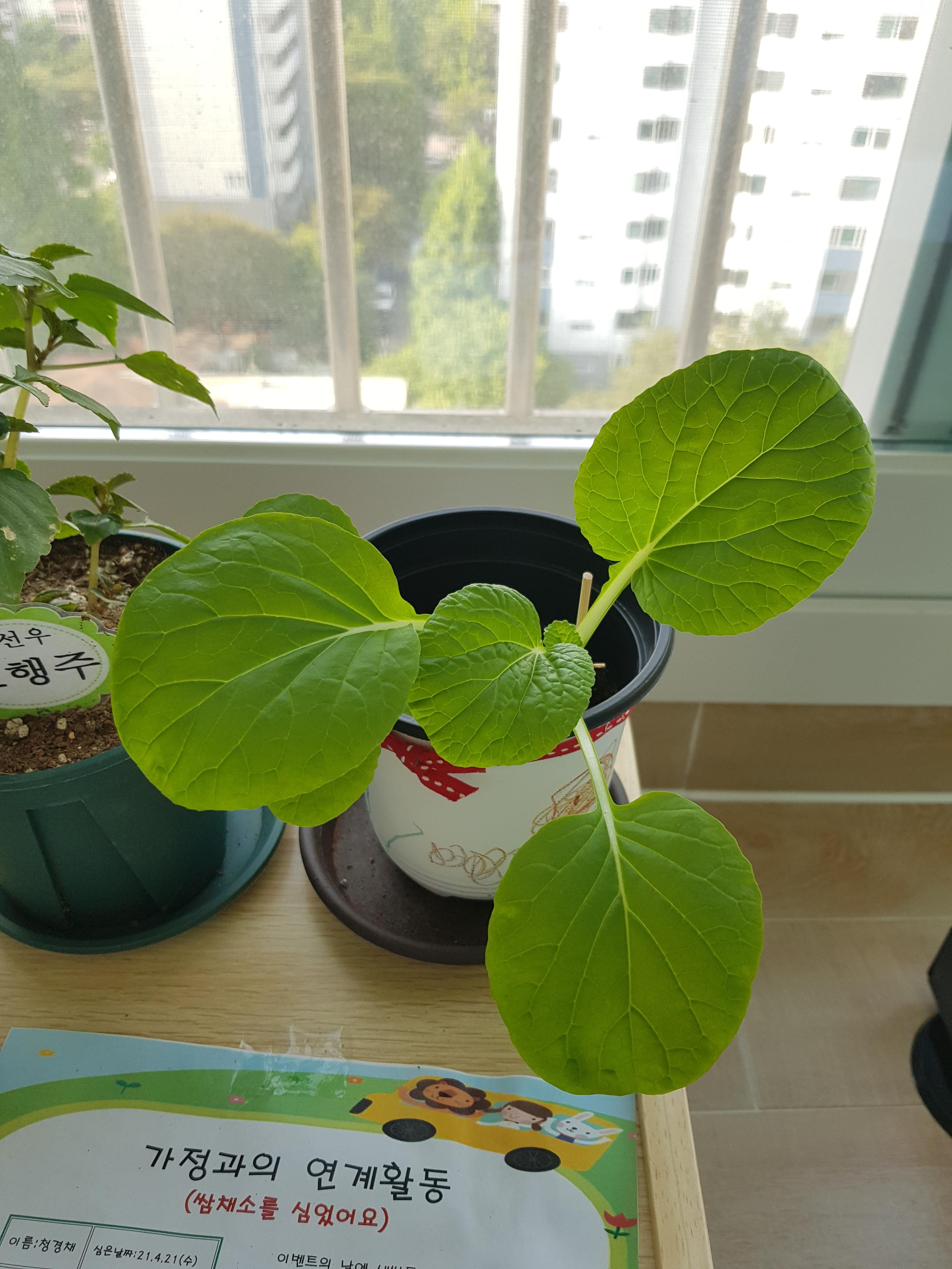 동글이네 어린이집 이벤트데이에 청경채 씨앗(쌈채소)을 심어왔더군요.