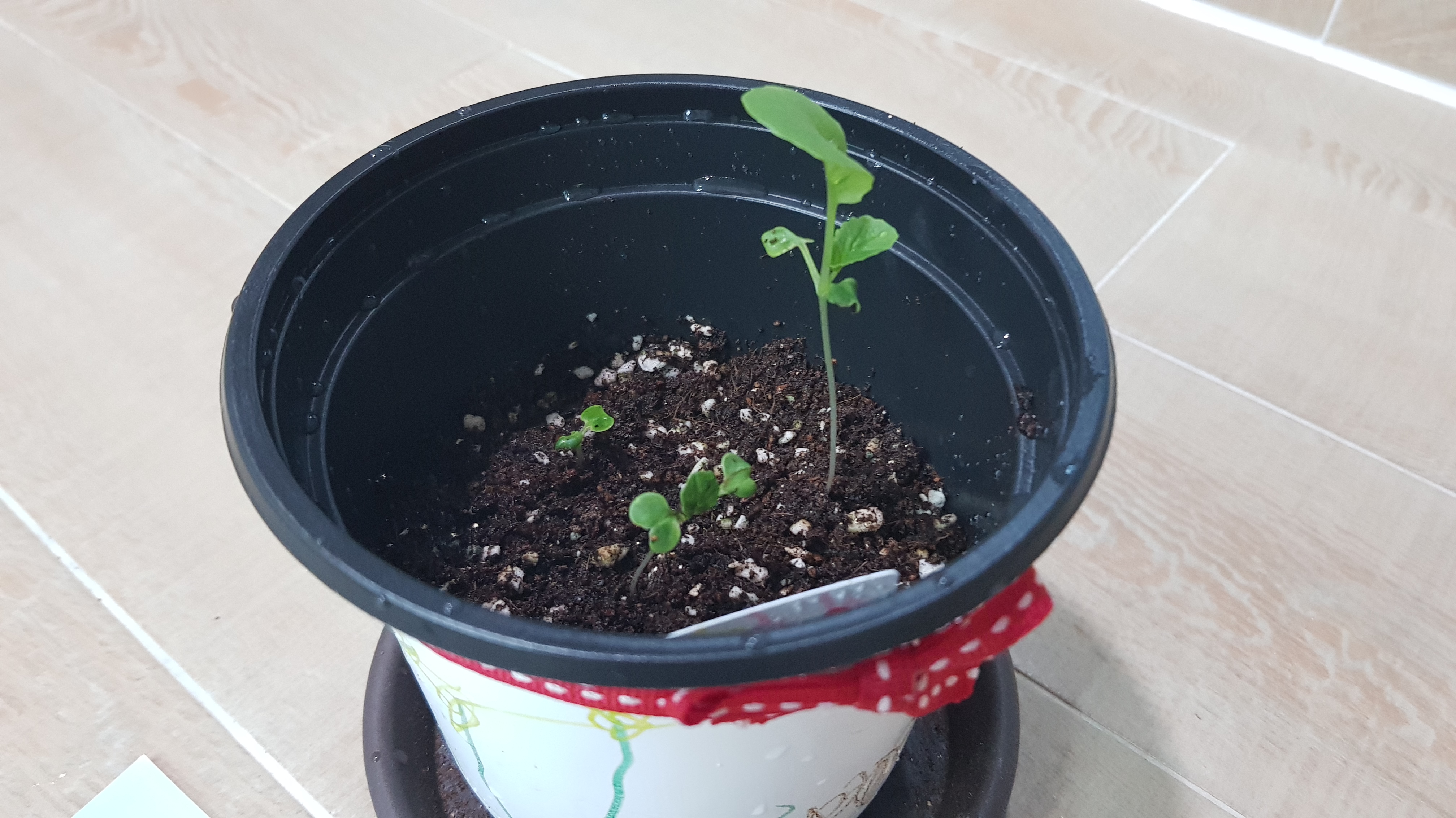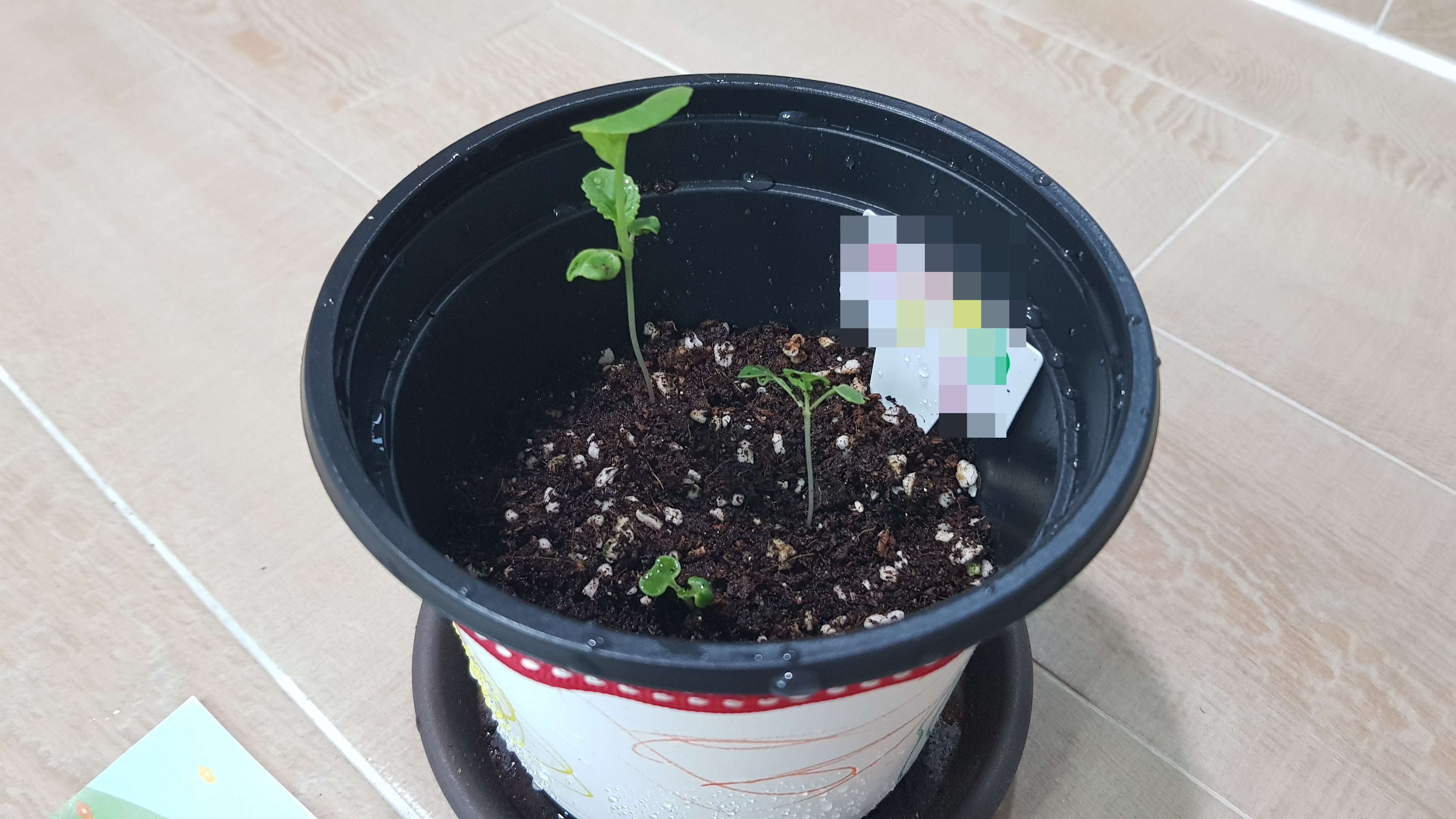 화분이 작아서 잘 자라는 친구 하나만 남겨줘야 했는데 땅을 비집고 나온 새싹들이 기특해서 차마 솎아내진 못했어요.
