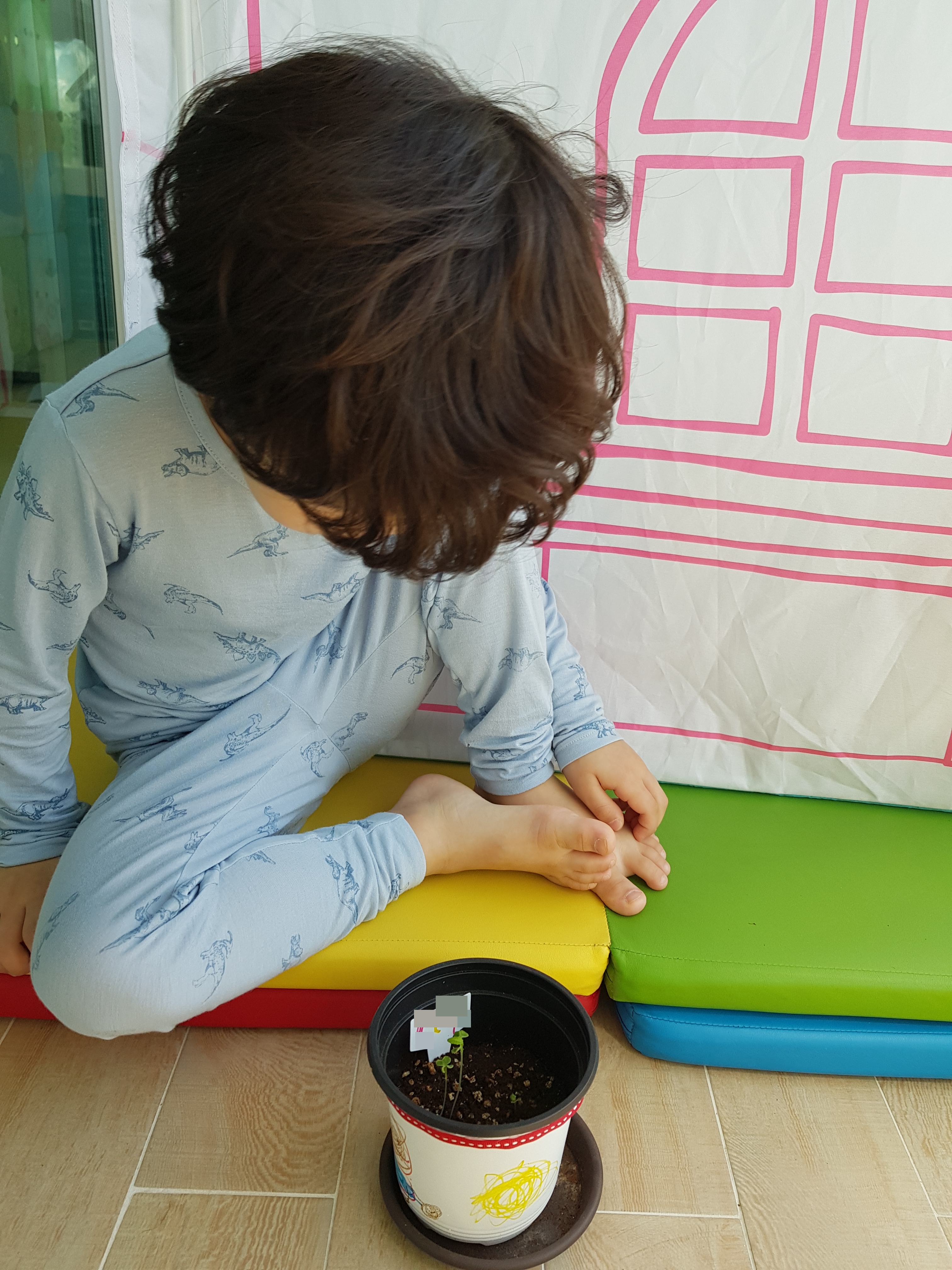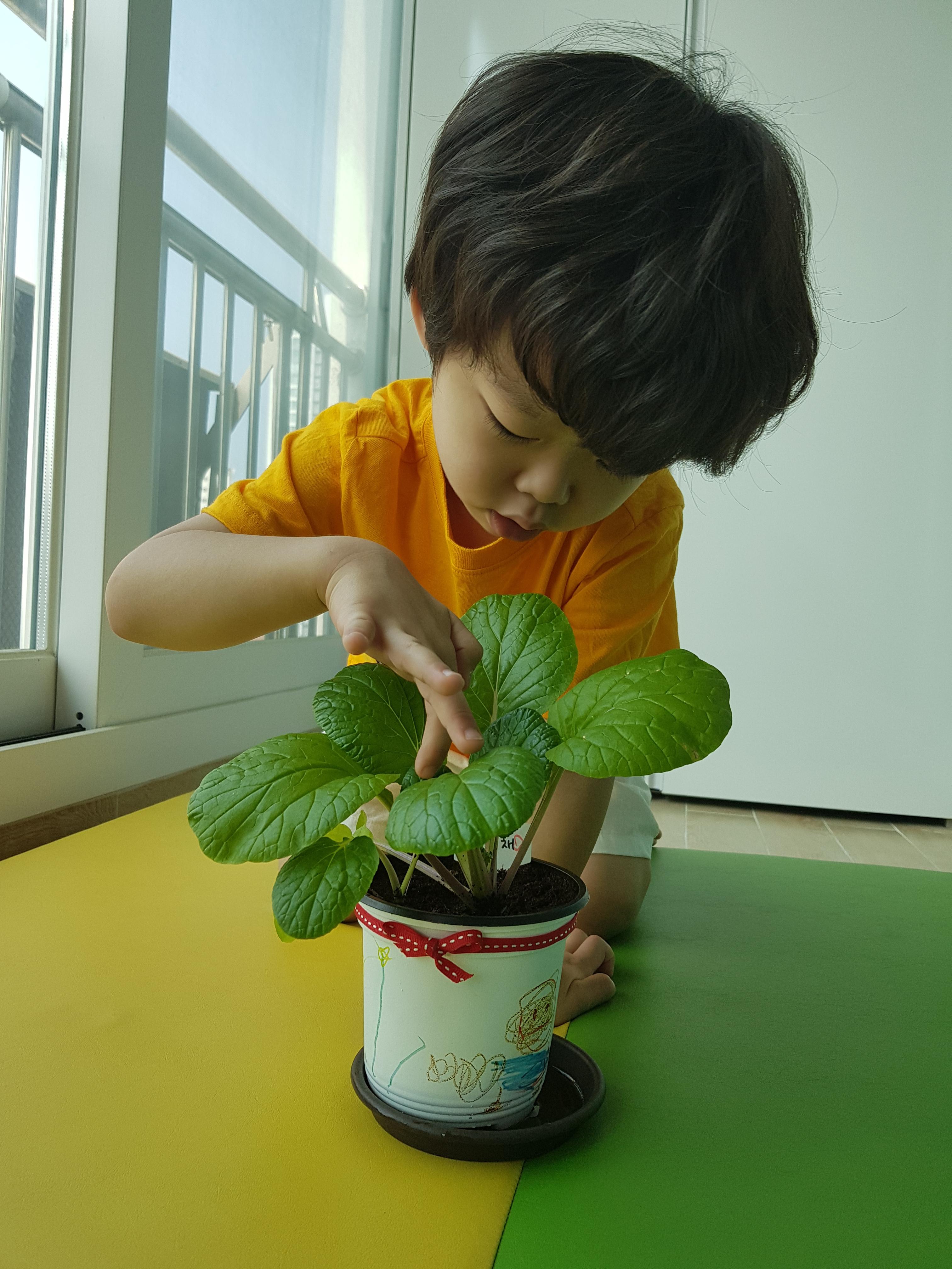 식물을 키우며 생장하는 모습을 관찰하고 애정을 쏟는 과정이 아이에게 좋은 교육이 되는 것 같아요.