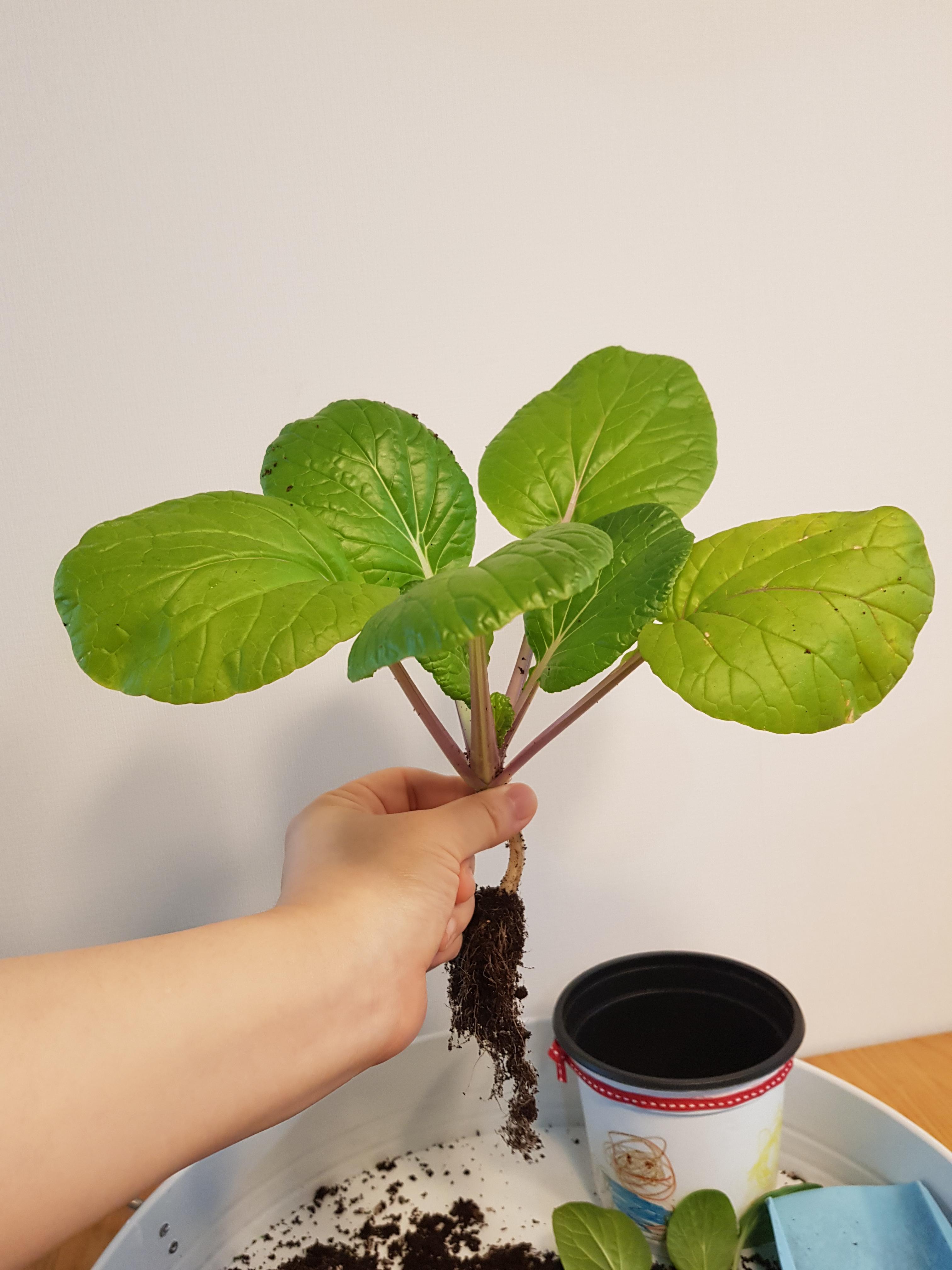 청경채가 잘 자라려고 얼마나 애썼는지 느껴지는게 화분흙 가득 청경채 뿌리더라구요.
